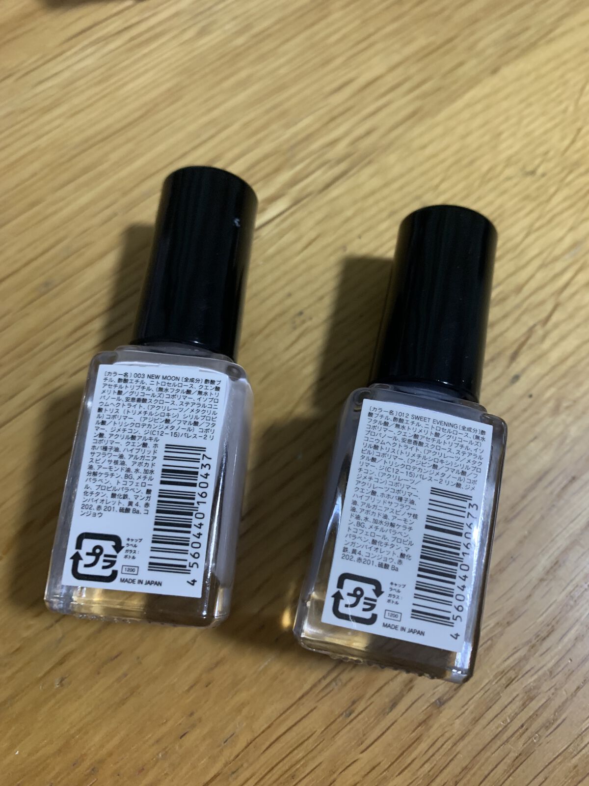 濃紺、発色がすごい。色ムラなし。透け感はなくマットだけどツヤのある仕上がり。速乾性◎。 まろやかなくすみブルー。おしゃれな色味。透け感はあまり感じられずマリンネイビーよりややマット。速乾性◎。 単品使いでもめっちゃかわいい♡ さりげない輝きで、ギラギラしない。透け感あり。 個人的にめちゃくちゃ好みの質感でした。光が当たると偏光パールが紫、青、ピンクに発色してきれい☺️