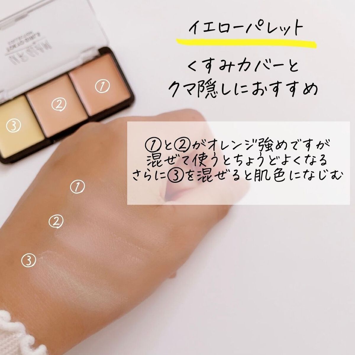 - 肌悩みに合わせて選べる3色展開のコンシーラーパレット。 単色はもちろん、色を組みあわせて自分の肌に合わせた色を作ることもできます。 #ニキビ跡、赤みカバー #くすみカバー #ハイライトにも #ミキシングコンシーラー