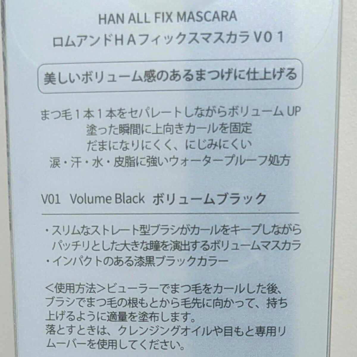 。.゚:✿。.゚:✿。.゚:✿。.゚:✿。.゚:✿。.゚:✿。rom&ndハンオールフィックスマスカラV01ボリュームブラックVOLUMEBLACKこのマスカラは1本1本まつ毛をしっかりキャッチして、魅力的な目元を演出するムードマスカラらしい...