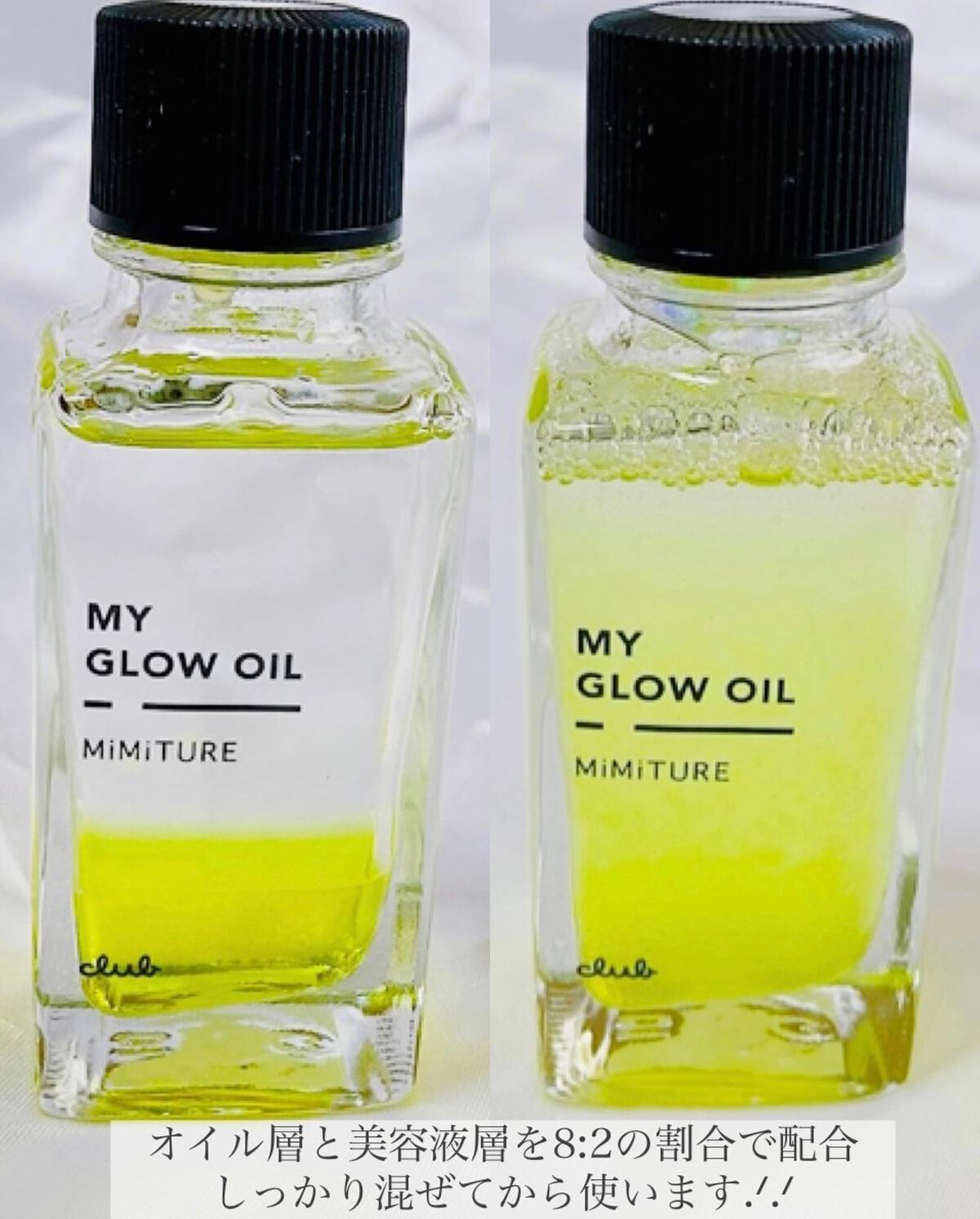 洗顔後、化粧水の前に使う ブースターオイル美容液(*ˊᵕˋ*) 化粧水の浸透をサポートしてくれ 潤いとツヤをプラスしてくれます✨ やわらか肌に整えるオイル層と ぷるぷる潤う肌に整える美容液層の 2層になっていて、それがとっても綺麗で つい見入ってしまいました🥰 使用する時はよく振ってから! サラッとした使用感で 肌馴染みが良く、しっとりとした仕上がり🤍 顔だけでなく、髪や体の乾燥が気になるところにも使えるマルチオイル☺️ キツくない、ふんわり優しい香りがして癒されます💗 クラブコスメチックス公式通販サイト 「クラブコスメオンライン」のみで 〖 限定発売〗です😍 2月28日まで マイグロウオイルを購入で 送料無料になるキャンペーン中🎉 気になる方はこの機会に是非 チェックしてみてくださいね😊🍀