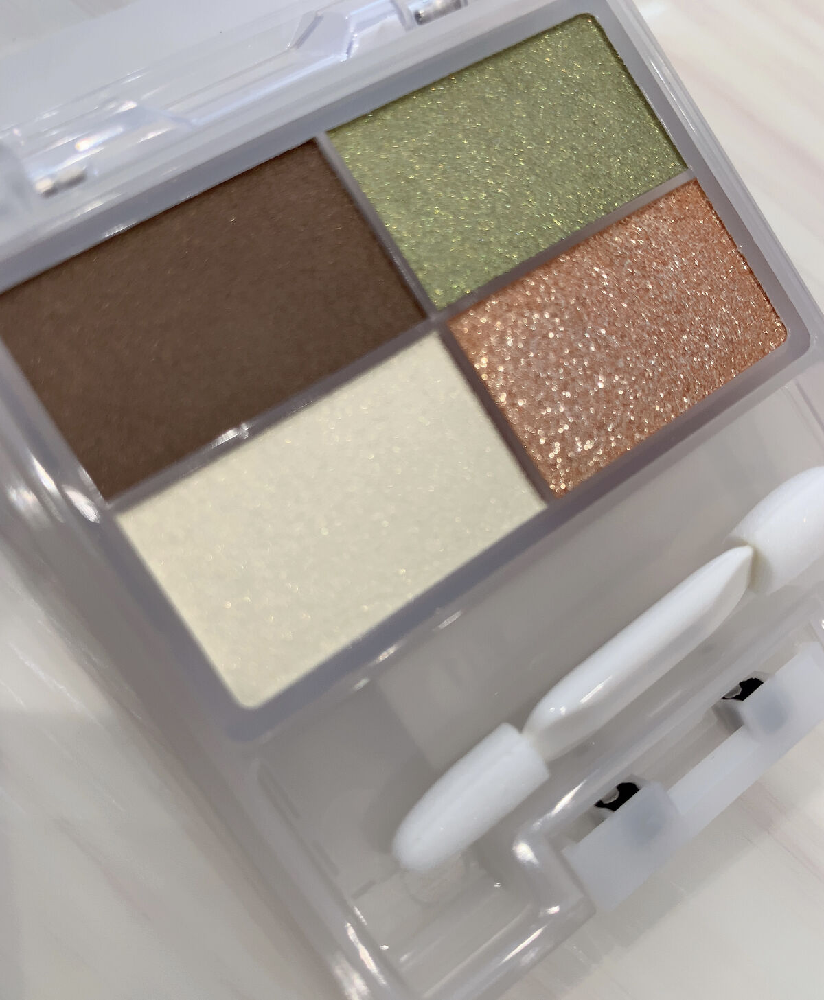 - シェードカラー・ミディアムカラー・ニュアンスカラー・スパークルカラーの4色が1つにまとまったメイクパレットです。 アイシャドウだけでなく、アイブロウやシェーディングとしても使えるカラーが入っているので、眉から目元まで、パレット1つでアイメイクが完成します。 カラーの組み合わせ次第でアレンジが広がり、様々なシーンに合わせたアイメイクを自在に楽しめます。 高密度ウレタン素材のチップ付きです。