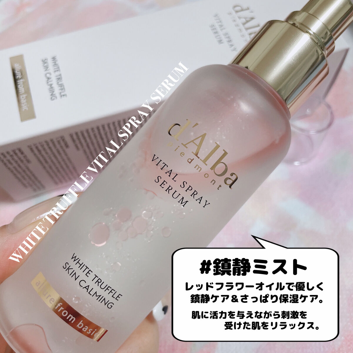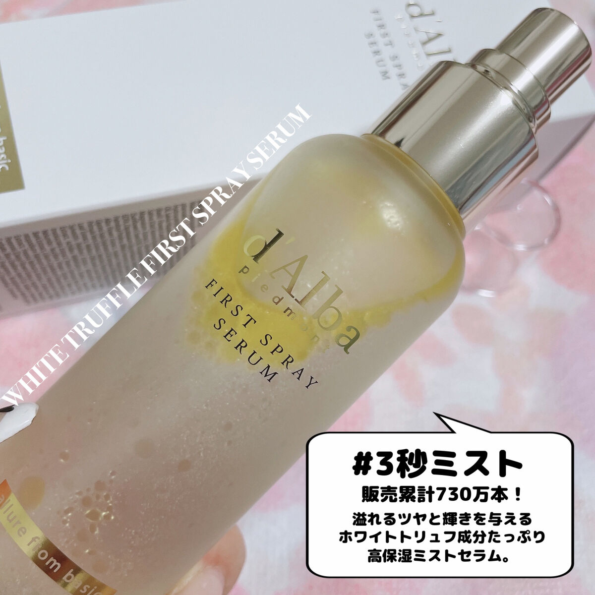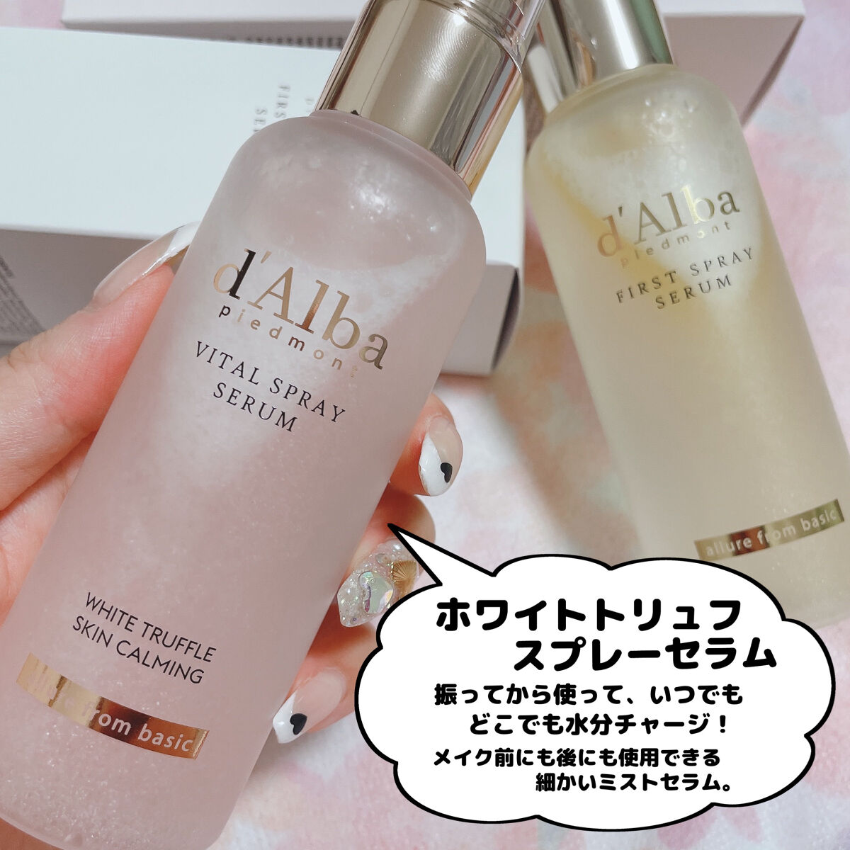 d'Albaダルバダルバホワイトトリュフファーストスプレーセラム50mld'Albaさんといえば…な超有名スプレーセラム💛 \\オイルとセラムで2重保湿ケア//超細かいミストが素早く潤ってくれて、お肌にハリや弾力を与えてくれます。またオイル成...