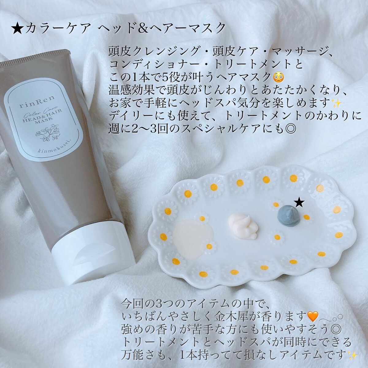 | 毛先までするするとまとまった髪になるヘアマスク。お風呂場がすごく良い香りに♡ | 詳細を見る |