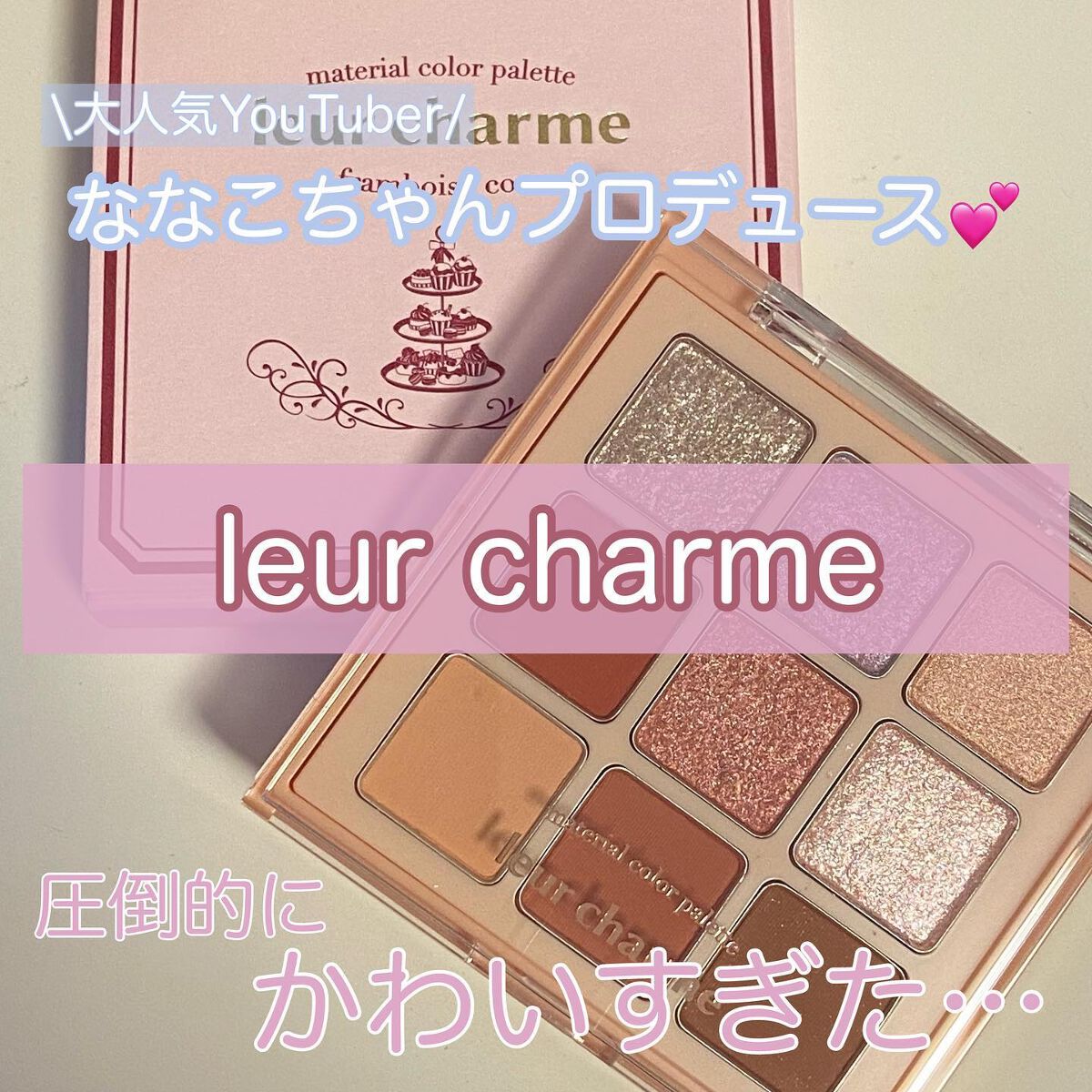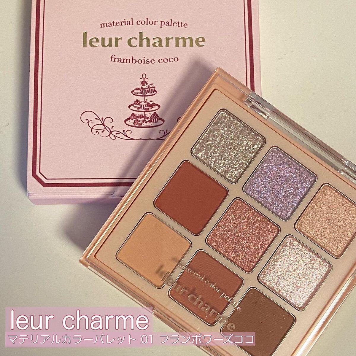 - 「ときめいて、私の瞳。」というキャッチフレーズの下、発色と質感にこだわった日本製9色アイシャドウパレット「leur charme material color palette(ルルシャルム マテリアルカラーパレット)」。2種展開で、どちらも個性的なカラーを入れつつ、絶妙な色合いやラメの使い方によって、パーソナルカラーにとらわれることなく好きな色を楽しめる構成となっています。