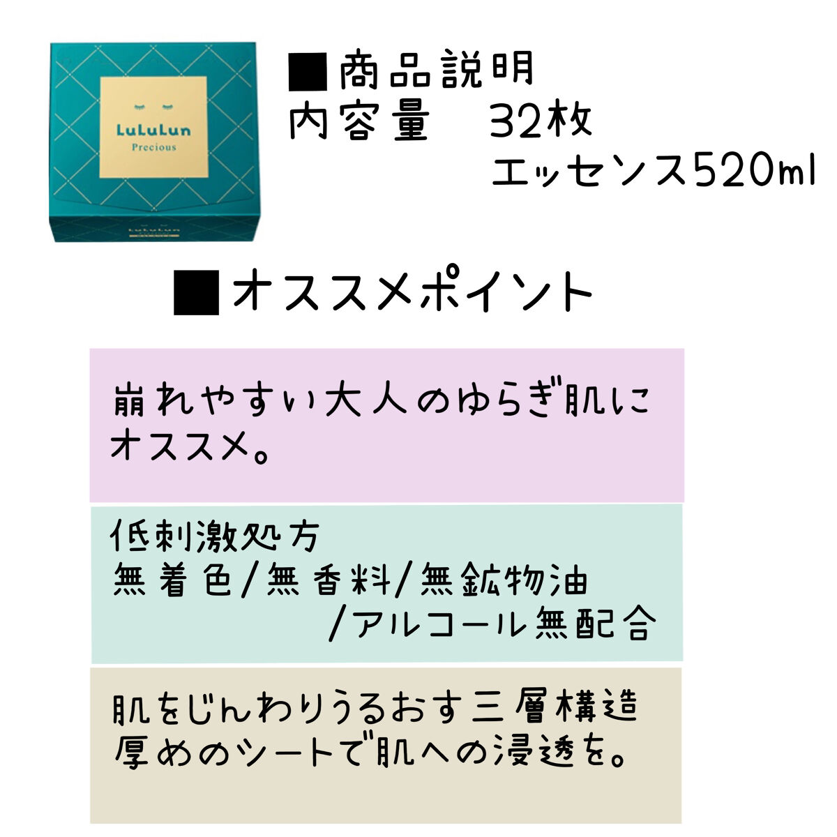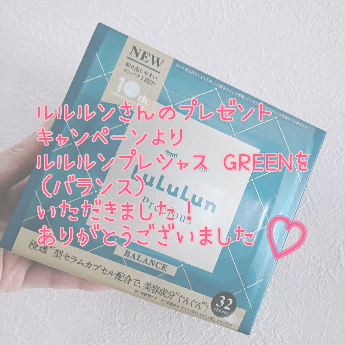 ルルルンのモニター企画に参加していますルルルンプレシャスGREEN(バランス)ルルルンプレシャスは毎日使えます。化粧水代わりにさっとパックして使えるので楽ちん。しっとりしたきめ細かいパックで、ひたひたな液、とても気持ちよく使えました!パックの...