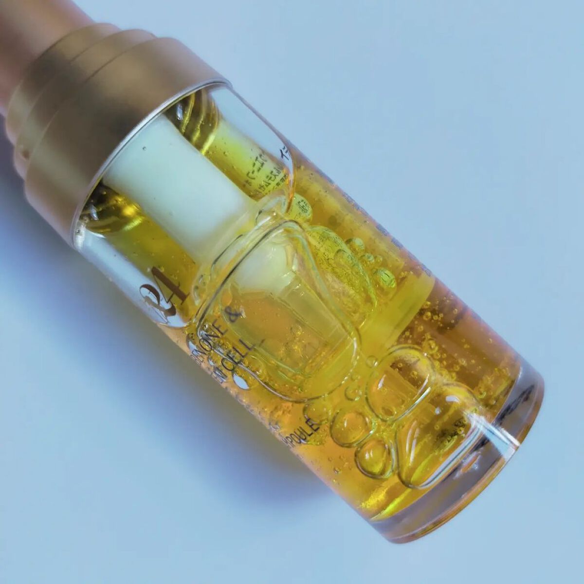 イデベノン20,000ppmが入っているそうです。 次世代の抗酸化物質として注目を集めている黄金に輝く抗酸化力の高い成分らしいです。 活性酸素、炎症の抑制、シミ、シワ、毛穴の黒ずみ、開きの改善、ハリ、うるおいを向上させ、肌の内側から若々しさを引き出してくれるそうです。 ハリのある肌へ。内側から働きかけるサイエンススキンケアだそうです。 肌に良さそうなものがたくさん入ってそうな感じがしました。 オレンジみたいな黄色みたいなアンプルだと思いました。肌に馴染むのが良く、使いやすいと思いました。