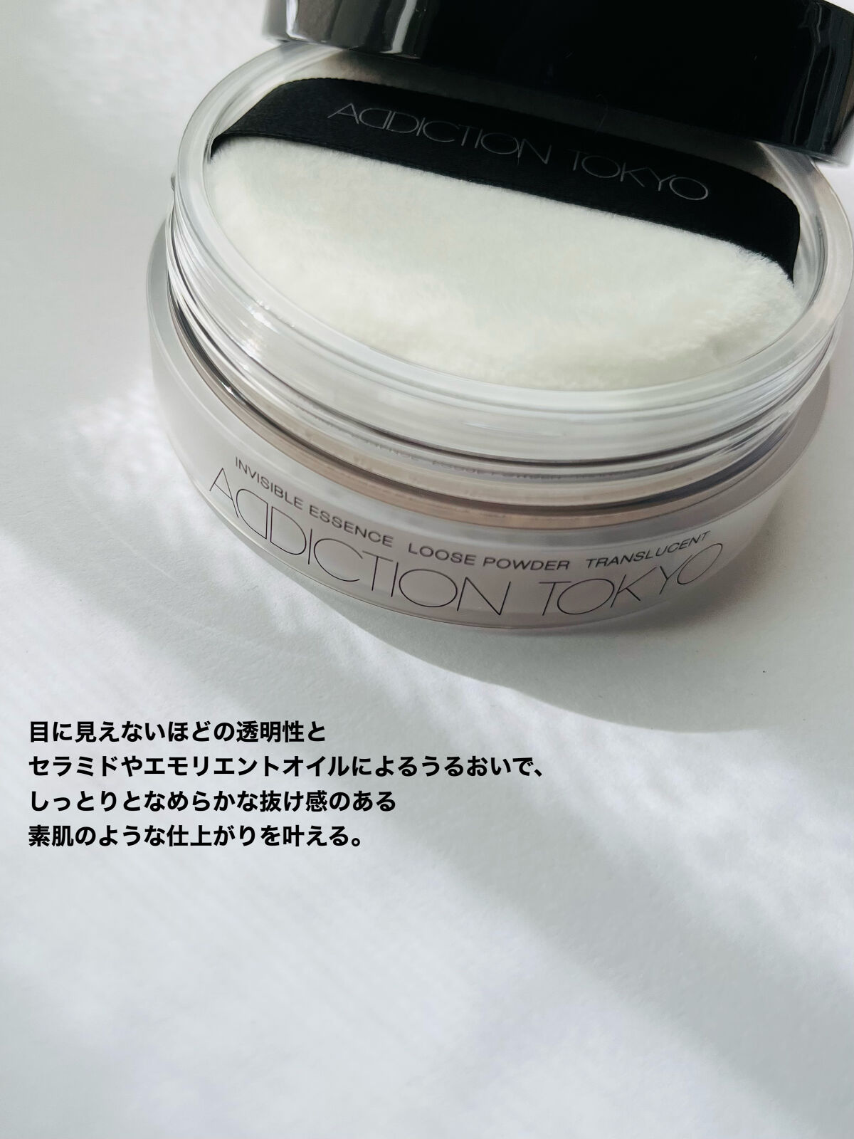 アディクション インビジブル エッセンス ルースパウダー トランスルーセントお気に入りパウダー♡セラミドコーティングしたパウダーがエッセンスのように溶け込み、なめらかな質感に。光の透過と反射を操り、素肌のようにフレッシュな、きめ細かい仕上がり...