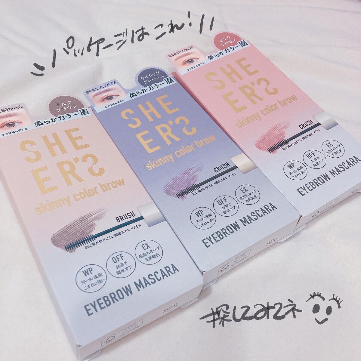 - しっかり発色で眉色楽しむ! ひと塗りで垢抜ける、ニュアンスカラー眉マスカラ 髪の色に合わせなくてもいい。合わせてもいい。 素顔を引き立て雰囲気もメイクする眉カラー。 01 ミルクブラウン:暗髪や濃い眉の方にも黒さを押さえて柔らかく見せるふんわりなじみベージュ メイクをもっとみんなのものに お湯で簡単オフ フィルムタイプ しっかり発色で眉色楽しむ! ひと塗りで垢抜ける、ニュアンスカラー眉マスカラ ・繊細スキニーブラシ 1本1本キレイに塗れて、 液が肌に付きにくい極細タイプ 先端に液が溜まりにくいストレート形状 ・高発色マスカラ液 しっかり発色するのに自然! 肌なじみパウダーin ・スタイリングポリマー配合 眉頭を立ち上げたり眉の生えぐせを整えて、毛流れをキープします ● 汗・水・皮脂・こすれに強いマルチプルーフ ● 眉毛、まつ毛をケアする美容液成分※in ※パンテノール、センブリエキス、ビオチノイルトリペプチド-1(すべてうるおい成分)