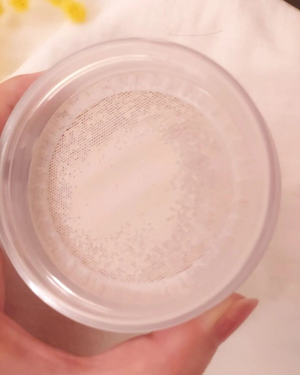 テクスチャーは酒粕❗ 酒粕をそのまま塗ってる?!って感じのテクスチャー。色も酒粕。 もたっとしたテクスチャーだから、塗り拡げてる時に垂れることもなし✨ 塗ってから5分〜10分くらい置いて流すんだけど、密着感があってしっとりしてるテクスチャーからその間も乾燥はし🎵 もたっとしるけど、思っていたより洗い流すの大変じゃなかった✨ 排水溝が詰まる心配もなさそう☺️ 私は湯船に使ってる間に塗ってるんだけど、いい感じ♡ 日本酒作る杜氏さんの手がキレイだっていう発想から作られたのに納得する使用感。