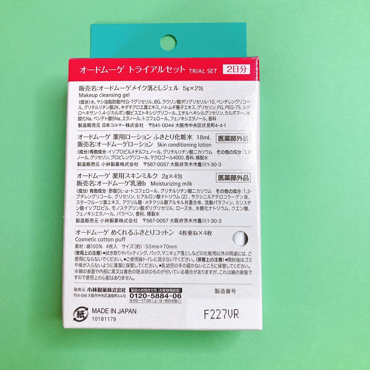 ※2022年使用品のため評価なしトライアルセット・商品名オードムーゲトライアルセット メイク落としジェル 薬用ローションふきとり化粧水 めくれるふきとりコットン 薬用スキンミルク・値段定価550円(440円で購入)・購入場所トモズ・評価★★☆...