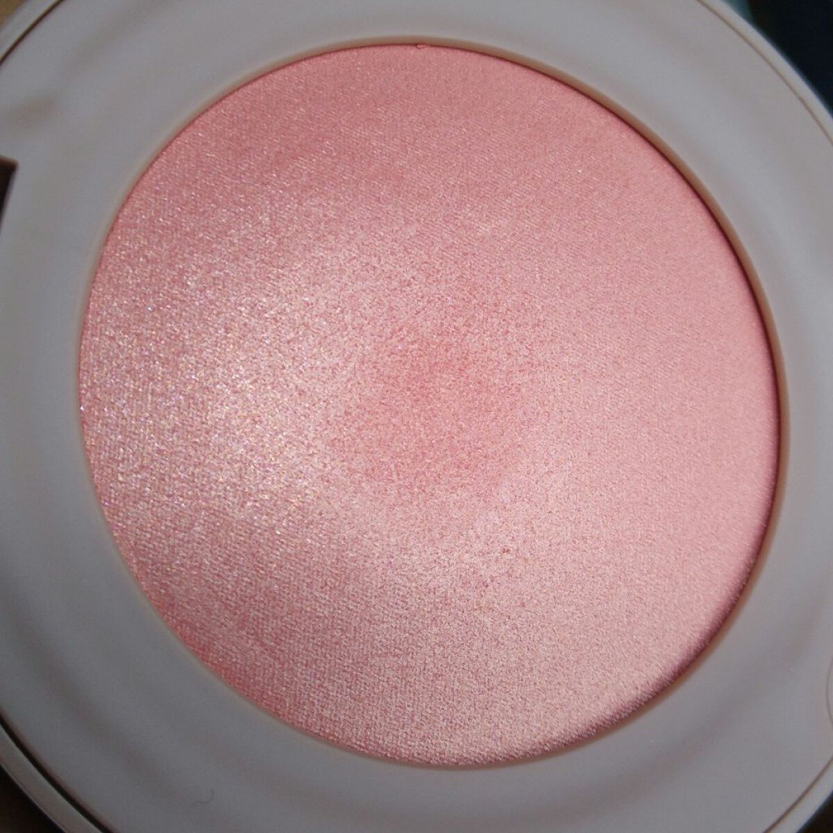 このチークの特徴は質感でしょうか パウダーでもクリームでもないふにふにとした質感のおかげで、わざとらしくない綺麗なツヤをつくってくれます 粉質がしっとりとしているので粉飛びもないです スウォッチは指塗りです 指塗りだとツヤが強調されて、どちらかというとハイライトのような仕上がりになります ブラシで塗ると、薄くパールが乗るのでつやつやしすぎずに自然なツヤ肌に仕上げることができます 個人的にはブラシで塗る方が好みです!