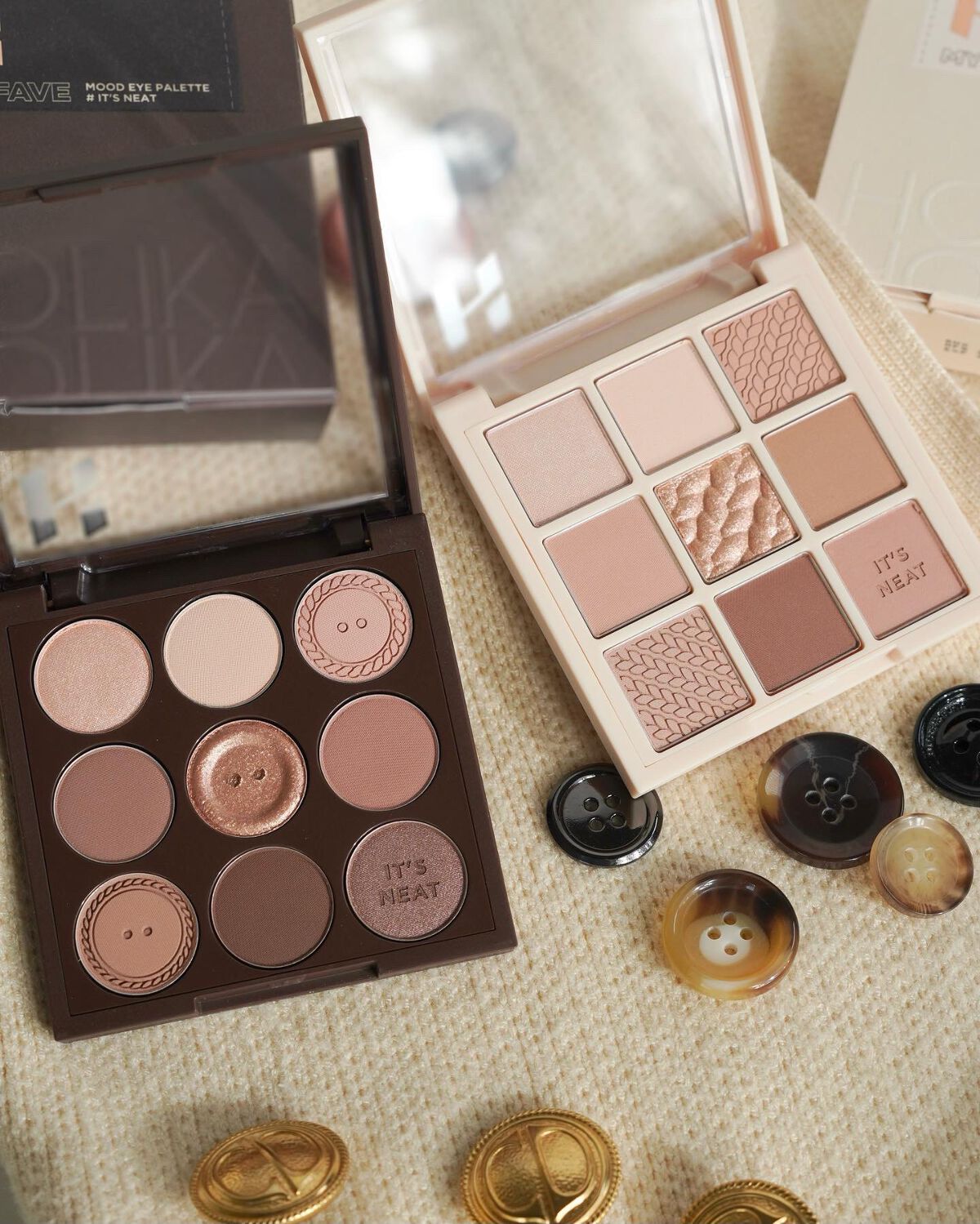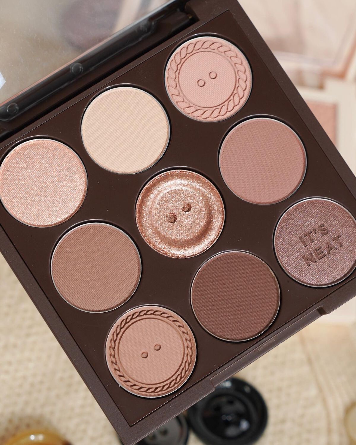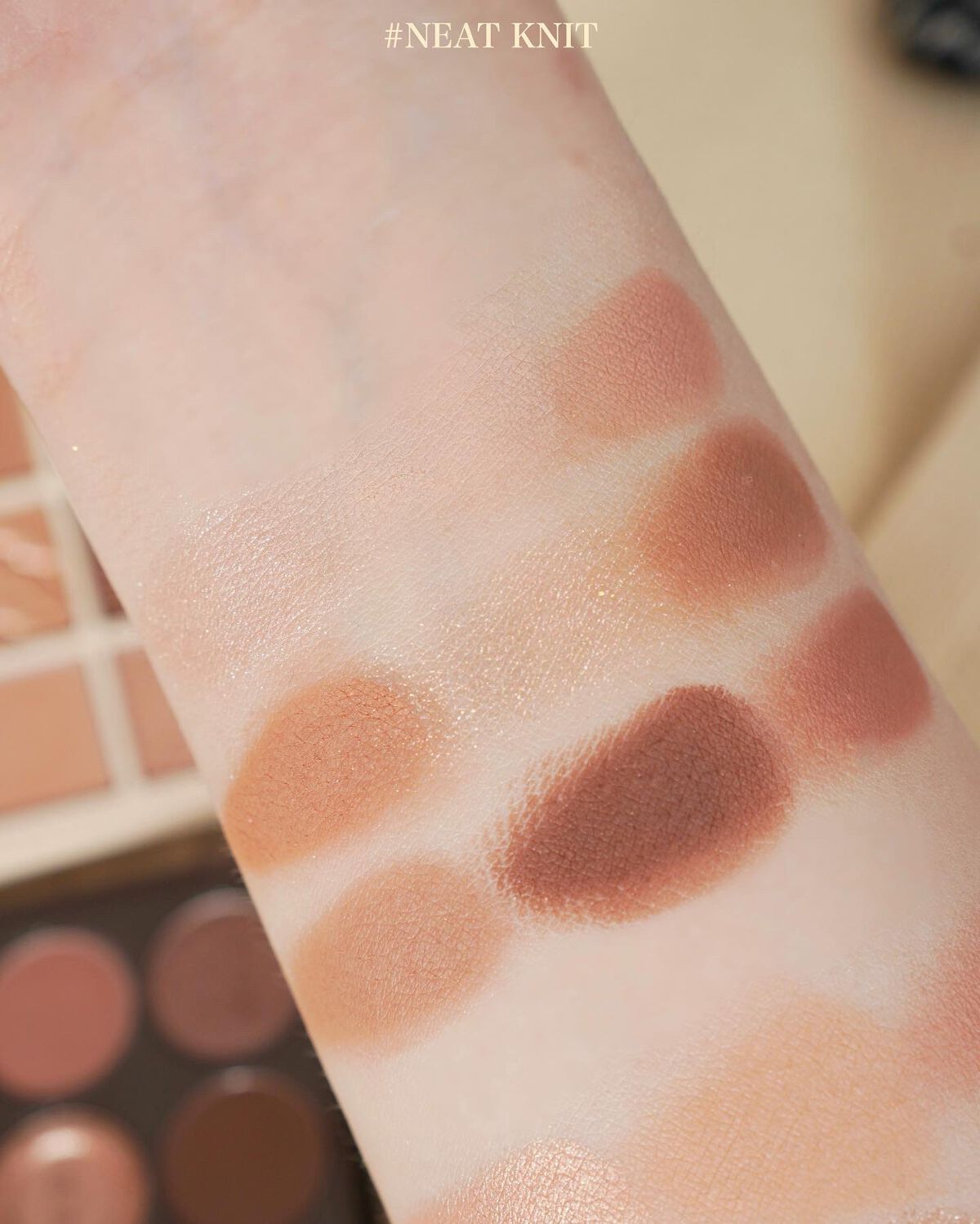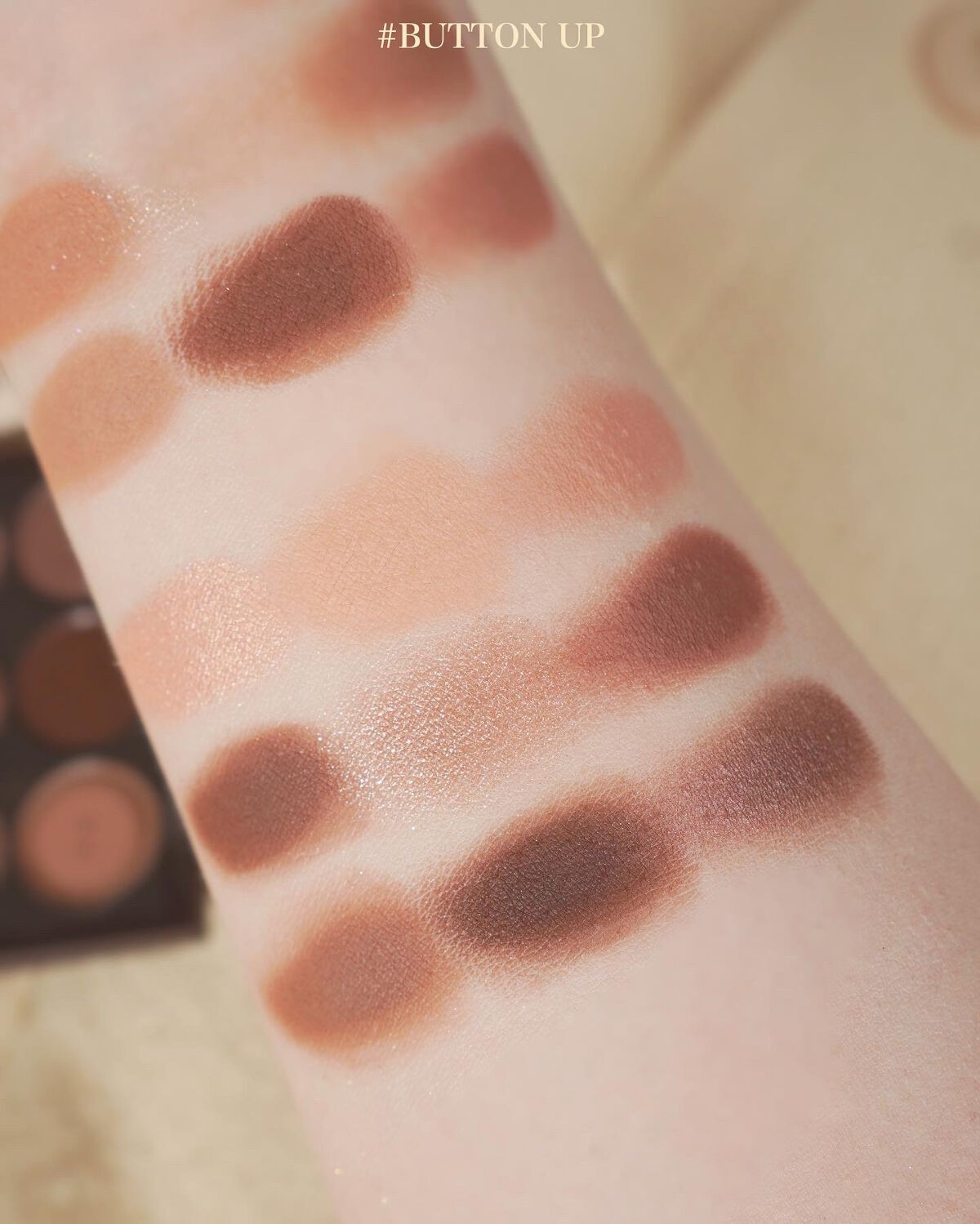 マット、シマー、グリッターがセットされた9色パレット♡ ほんのり赤みを感じるパレットでニュートラルなカラー配色だと思います。秋冬にぴったりな色みになっていて可愛いです♡ マットはサラサラで粒子が細かい粉質。 シマー、グリッターは小粒で繊細な輝きなので普段も使いやすいです♡ ローズアンドサンダルウッドの香り付きなので好みは分かれそう…