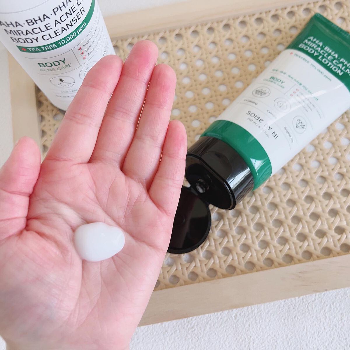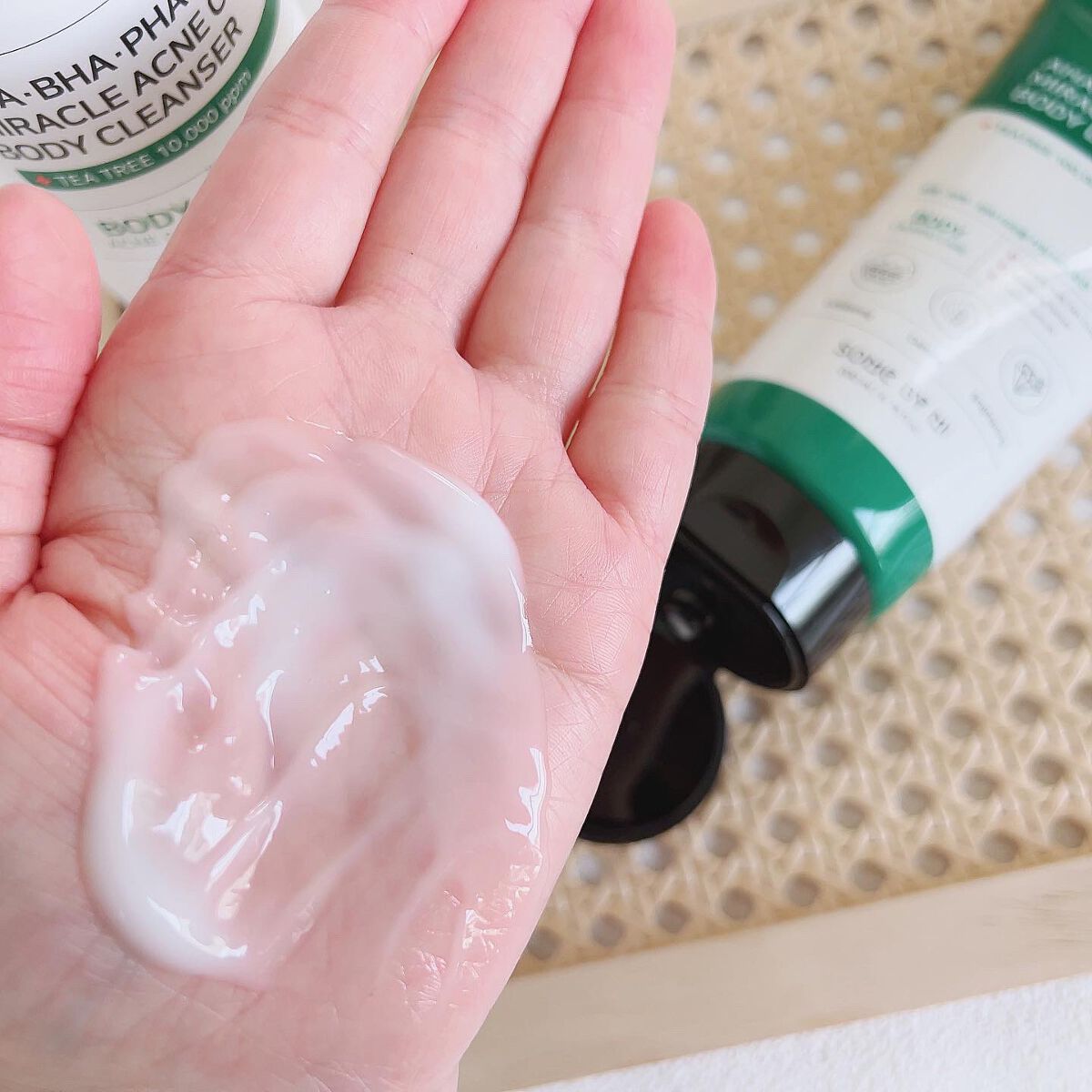 SOMEBYMIの中でも、リピ買い率が高いアイテム🌟 秋冬、すべすべで柔らかい肌を作るため、ミラクルアクネボディクレンザーを使い始めてみました💕 泡立ちはふわっふわっ🫧 泡立てネットで泡立てなくても、手でモコモコと泡立ちます💗 さっぱりとした洗い上がりなのですが、つっぱり感がないのが嬉しいところ💎 背中ニキビの予防にもおすすめ🌿