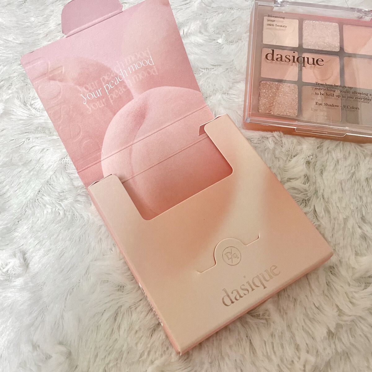 搾りたての桃果汁カラーに輝く日差しのグリッターを加えたデイリーコーラルピーチパレット dasiqueって箱がまず可愛いから届いてもうときめくんだけど開けても可愛いのずるいよね。 バリエーション豊富にメイクできるし色もかわいいのでめちゃめちゃ推していきたいパレット第一位。 ラメは大粒で涙袋にのせるのが最強に可愛くなれます🎨(私調べ) 公式にのってた組み合わせがとても可愛かったので迷ったら是非見て試して欲しいです✧︎