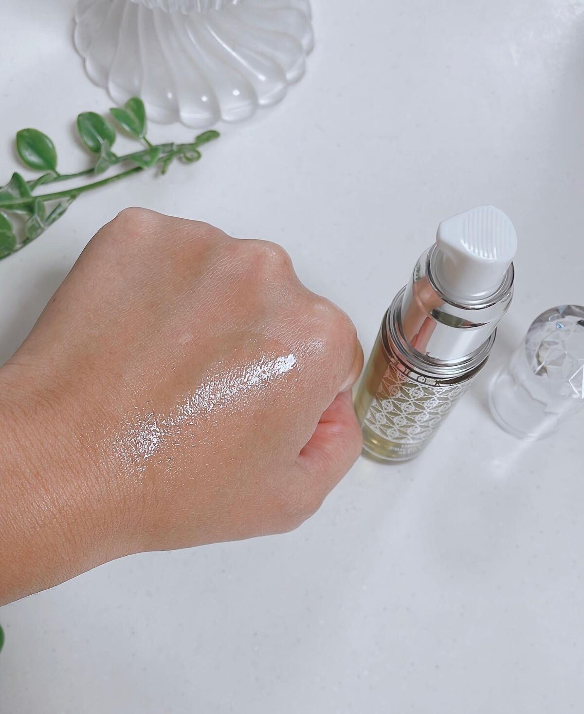 オイルなのにベタつきがないテクチャーでとっても使いやすい。 手ぐしで馴染ませるだけなのでとっても簡単に塗布できちゃいます🌟。:* キープ力もあり付けたときと付けないときの差は一目瞭然!ヘアセットが簡単にできちゃうので時短ケアできてます。