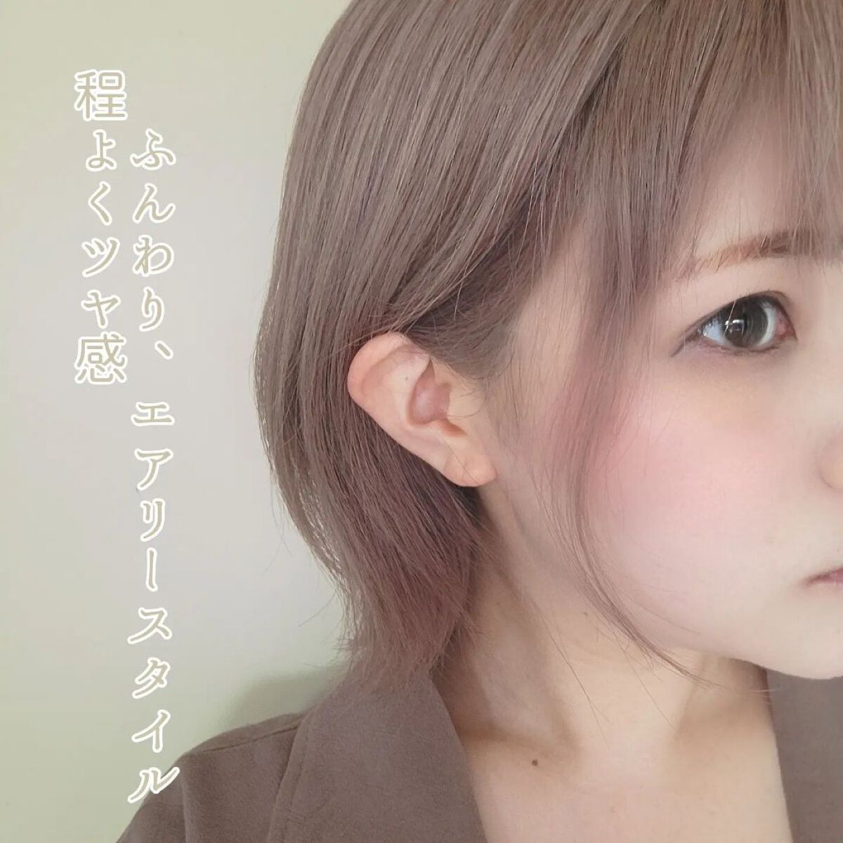 エアリーフィニッシュ エマルジョンはトリートメント効果で髪を補修しながらやわらかくふんわりとした束感のあるエアリースタイルが続く、スタイリング剤。 やわらかいテクスチャーで、髪になじませやすいですが、私の髪の毛のせいかふんわりはならずしっとり束感な感じ。 ちょっと重くなるかなぁという印象でした。