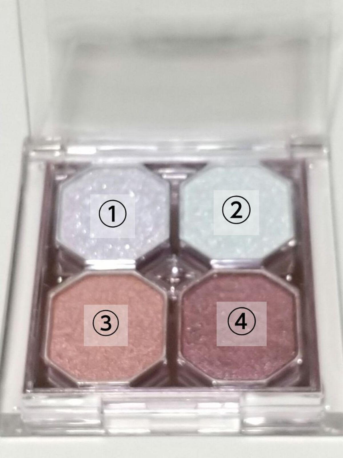 - 4色のアイシャドウを重ねるだけで理想のグラデーションが手軽に完成。深みを与えるマットや上品な艶めきをプラスするシマー、華やかなラメを組み合わせれば、こなれ感とナチュラルさを持ち合わせた目元に。シャンデリアのように華やかなグリッターやラメをのせて、毎日のメイクをもっとスペシャルに!