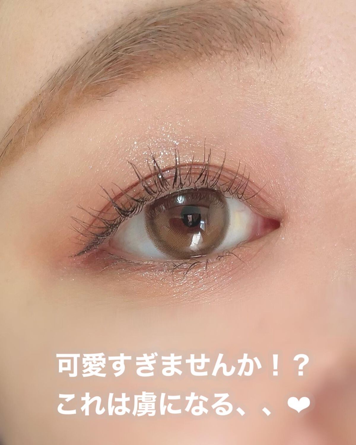 チェリー柄のパッケージが可愛いブラウンカラコン🍒 チョコ、ブラウン、ゴールドの3色のブラウンカラーのグラデーション🤎 着色直径も13.2mmだから、裸眼よりひとまわり大きく、だけど自然なサイズ感でナチュラルな仕上がり! 三日月型にハイライトが入っているから、瞳にさりげなく立体感を見せてくれるよ✨