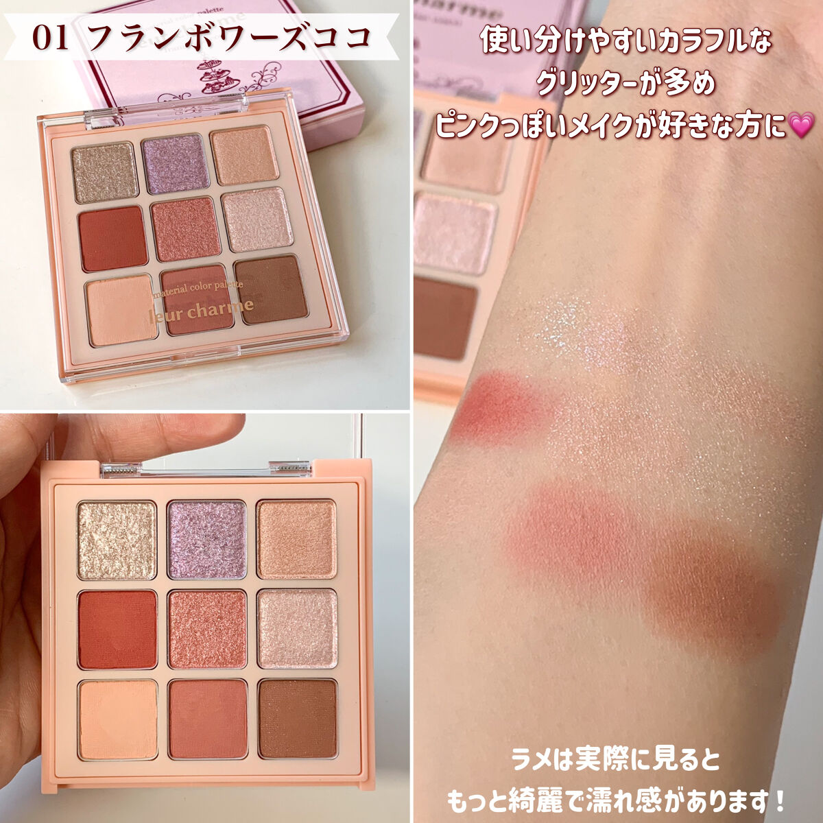 【#ルルシャルム #leurcharme】#マテリアルカラーパレット#フランボワーズココyoutuberななこちゃんの自信作である、ルルシャルムのマテリアルカラーパレット!ななこちゃんのYouTubeでも話されている通り、唯一無二の左上のアル...