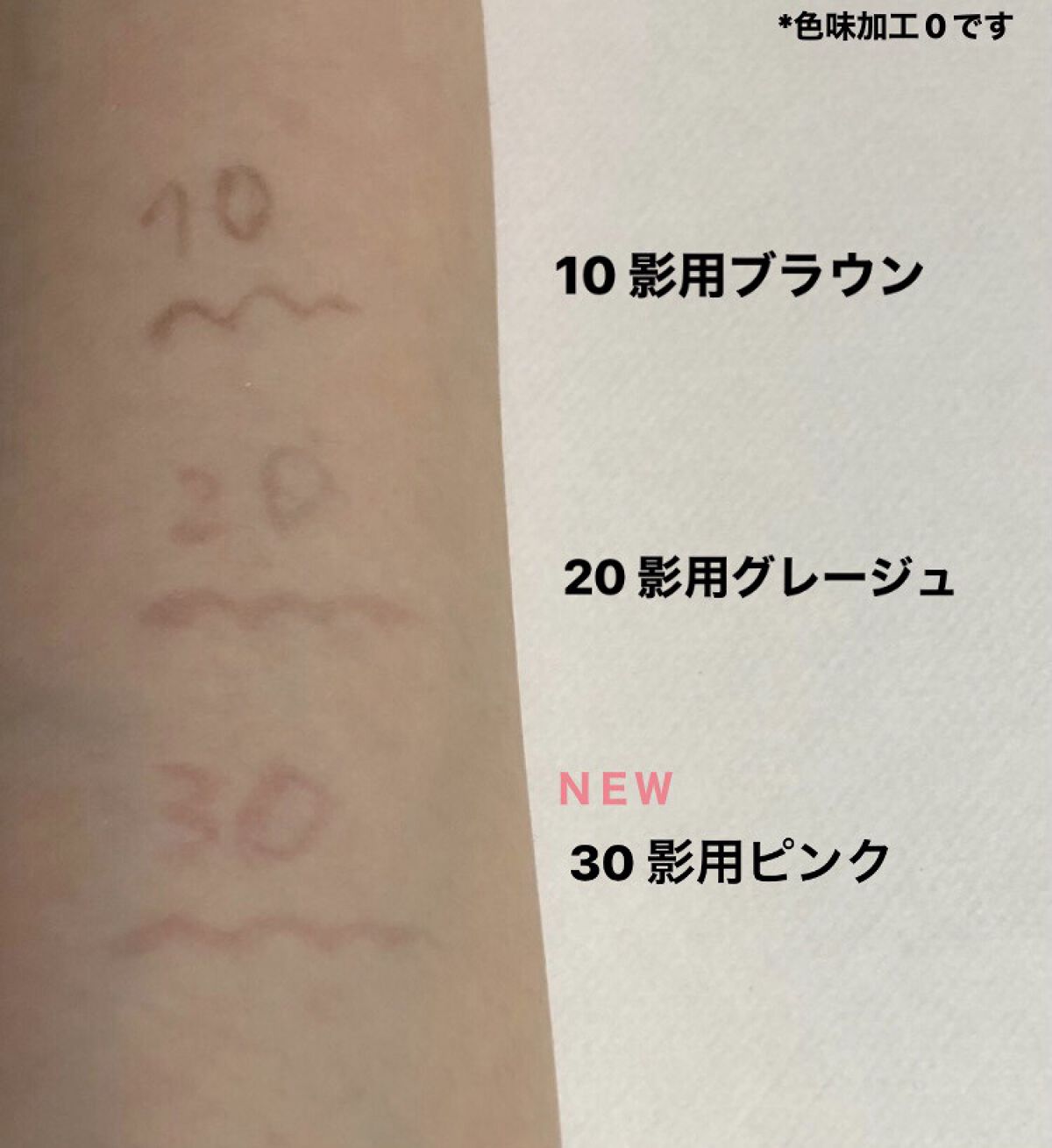 - <10 影用ブラウン> 水、BG、アクリレーツコポリマー、ペンチレングリコール、スルホコハク酸ジエチルヘキシルNa、エタノール、カミツレ花エキス、(+/-)黄4、赤227、青1 <20 影用グレージュ> 水、BG、アクリレーツコポリマー、ペンチレングリコール、スルホコハク酸ジエチルヘキシルNa、エタノール、カミツレ花エキス、(+/-)黄4、赤227、青1 <30 影用ピンク> 水、BG、アクリレーツコポリマー、ペンチレングリコール、スルホコハク酸ジエチルヘキシルNa、エタノール、カミツレ花エキス、(+/-)赤227、黄4、青1