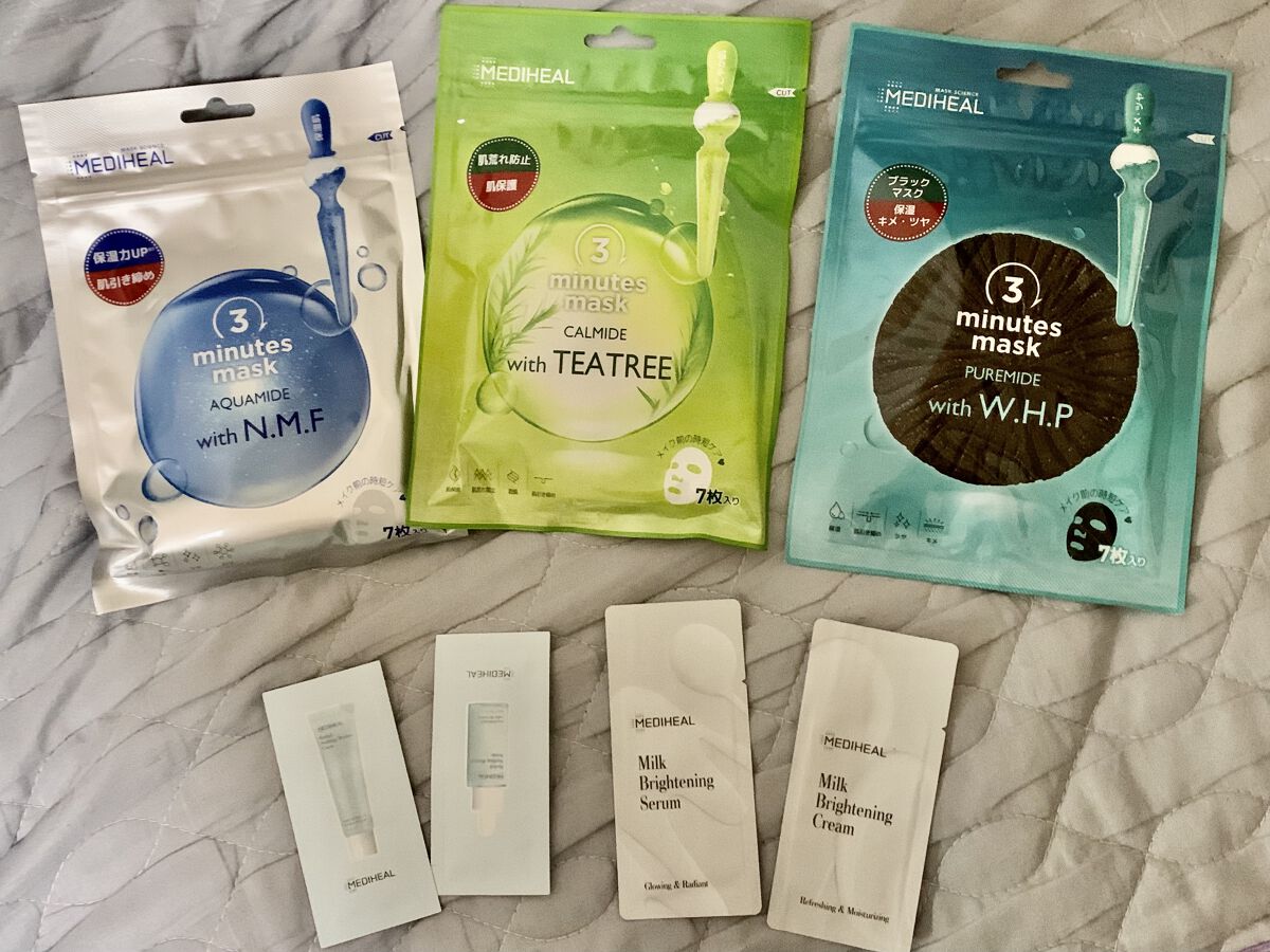 MEDIHEAL3ミニッツマスク:アクアマイドwithN.M.F1日1マスク😊1回3分で完了のスピーディー保湿ケア!忙しい朝、疲れた夜にメディヒールの時短マスク✨時短マスクは本当に1つ持っておくと使えるので好きです🙆♀️朝のスキンケアでゆっ...
