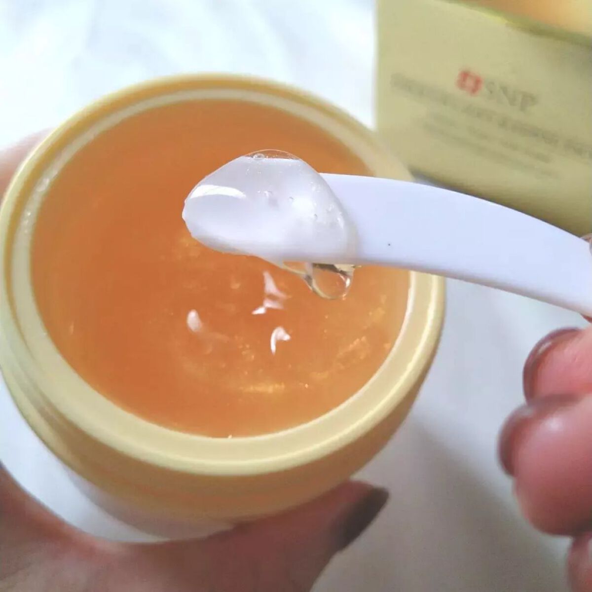 寝ている間にスペシャルケア ぐっすり寝て起きたようなつるんとした潤い肌に。 まるでゼリーのような質感で、お肌に膜を張るような感覚でとても心地が良いです! 軽くみずみずしい質感なので、年中使いやすいのも嬉しいポイントです♪