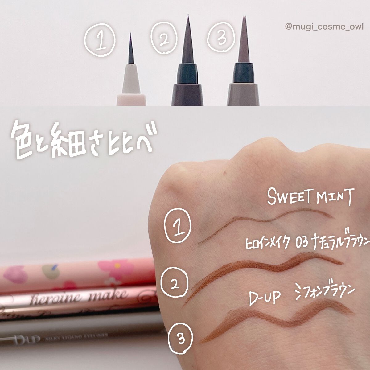 ⭕️描きやすい!! ⭕️かすれない!ペン先までしっかりインクが入っていて細い線もしっかり描けます! ⭕️滲まないのに落としやすい ⭕️使いやすいカラー セザンヌやヒロインメイクなど、巷で描きやすい・細いと言われているものはほとんどが0.1mm。それを超越する細さでほんっとうに描きやすいです💓 下まつ毛が逆さまつげ気味でマスカラやってもマツパしても存在感でないワタクシ🥲 目幅でて大歓喜です🥹 下まつ毛見えるってありがたいわぁ...泣 がっつり跳ね上げも微調整しながらひけて、下まつ毛とアイライナーどちらでも万能なアイテムです! 価格はQoo10のショップによりますが、高くても500円程度でした🫶 優秀で安いなんて試さない理由がない🥹 みんなに使ってほしい〜!!!