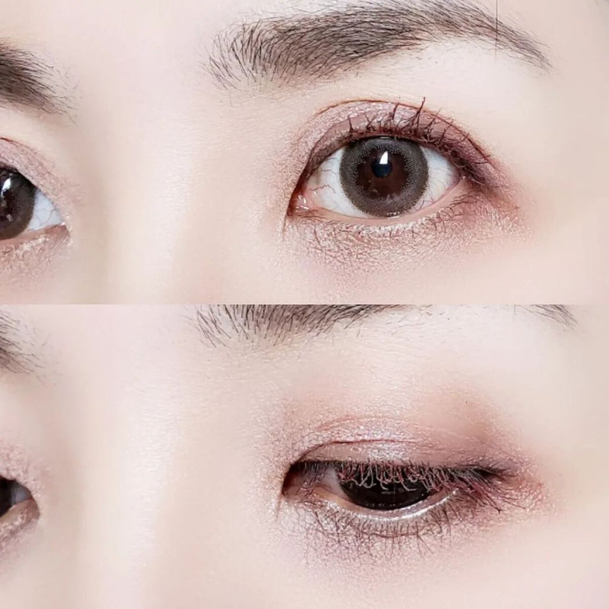 なんとなくだけど左側がブルベ寄り、右側がイエベ寄りの色味でニュートラルなパレットかなと思いました。 目元写真みると発色薄く見えるかなとおもいますが朝メイクして、直さず夜に撮ったのでこんな感じです。 カラコンはmimucoのブラウンフォンデュミムコのカラコンはどれも自然でかわいいです。