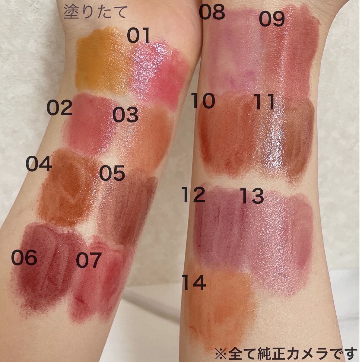 お気に入りは02ピンクバナナと03陽炎 02 Pink banana 💗 ベージュベースのピンクレッド 03陽炎 🧡 ベージュベースのオレンジ 04パンプキンワイン🧡 オレンジベースのブラウン 05ダークフィグ🤎 赤みかかったブラウン 062:00AM ❤️ 白雪姫のりんごみたいなパープルベースレッド 07ラスボス❤️ 明るめのしっかりとしたレッド