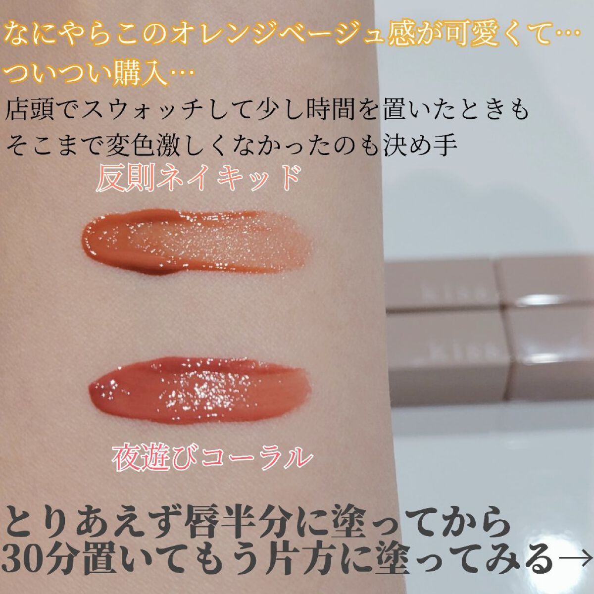 | 指で軽く触るとジェル膜を感じられますし、ツヤツヤぷるぷるのリップに仕上がります! | 詳細を見る | ||