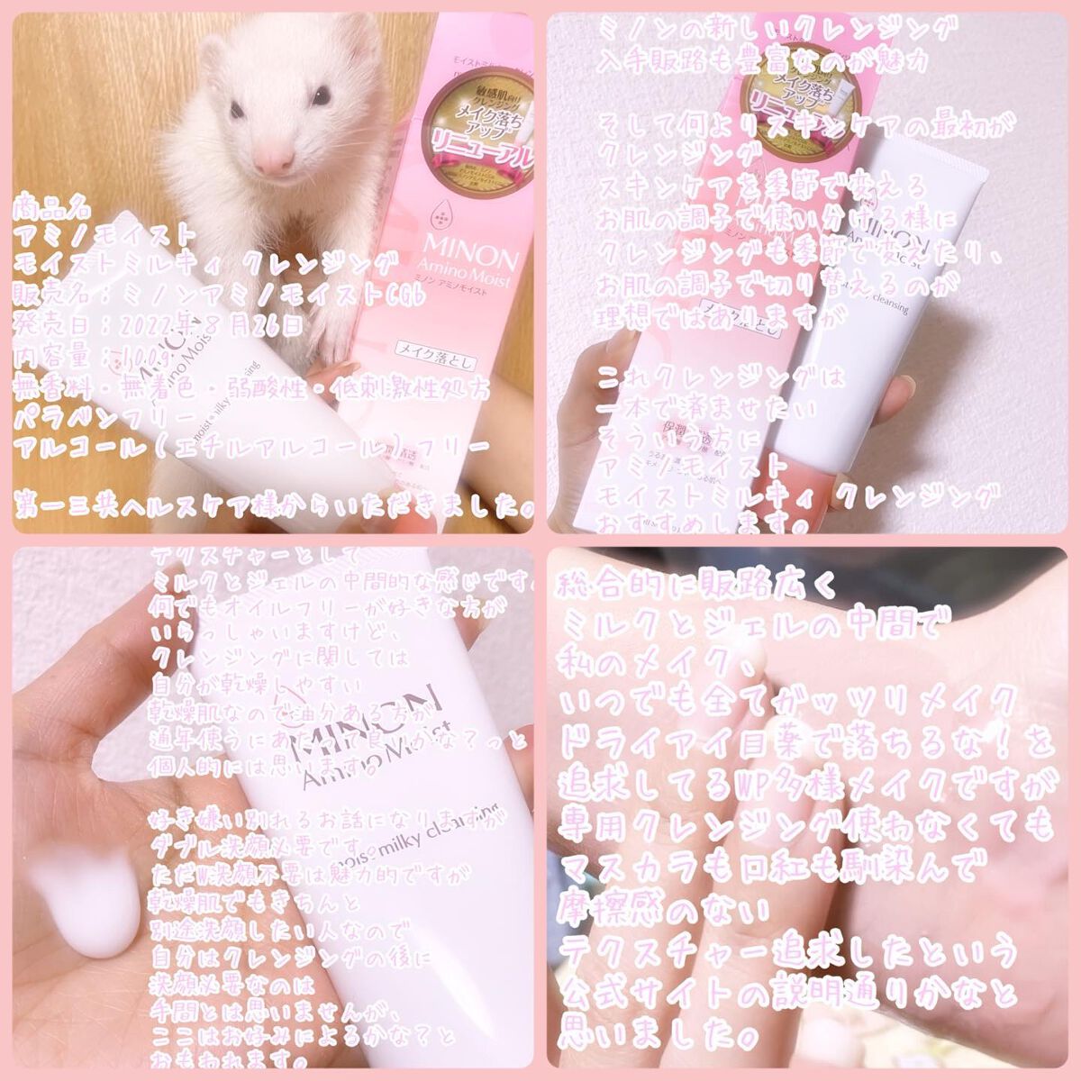 ☪︎⋆˚。✩•••····•••☪︎⋆˚。✩低刺激処方とろけるクリームクレンジング☪︎⋆˚。✩•••····•••☪︎⋆˚。✩ミノンアミノモイストモイストミルキィクレンジングを買ったよ◡̈✩*˚₊‧ੈ✩おすすめポイントੈ✩‧₊˚*⋆肌あたりの...