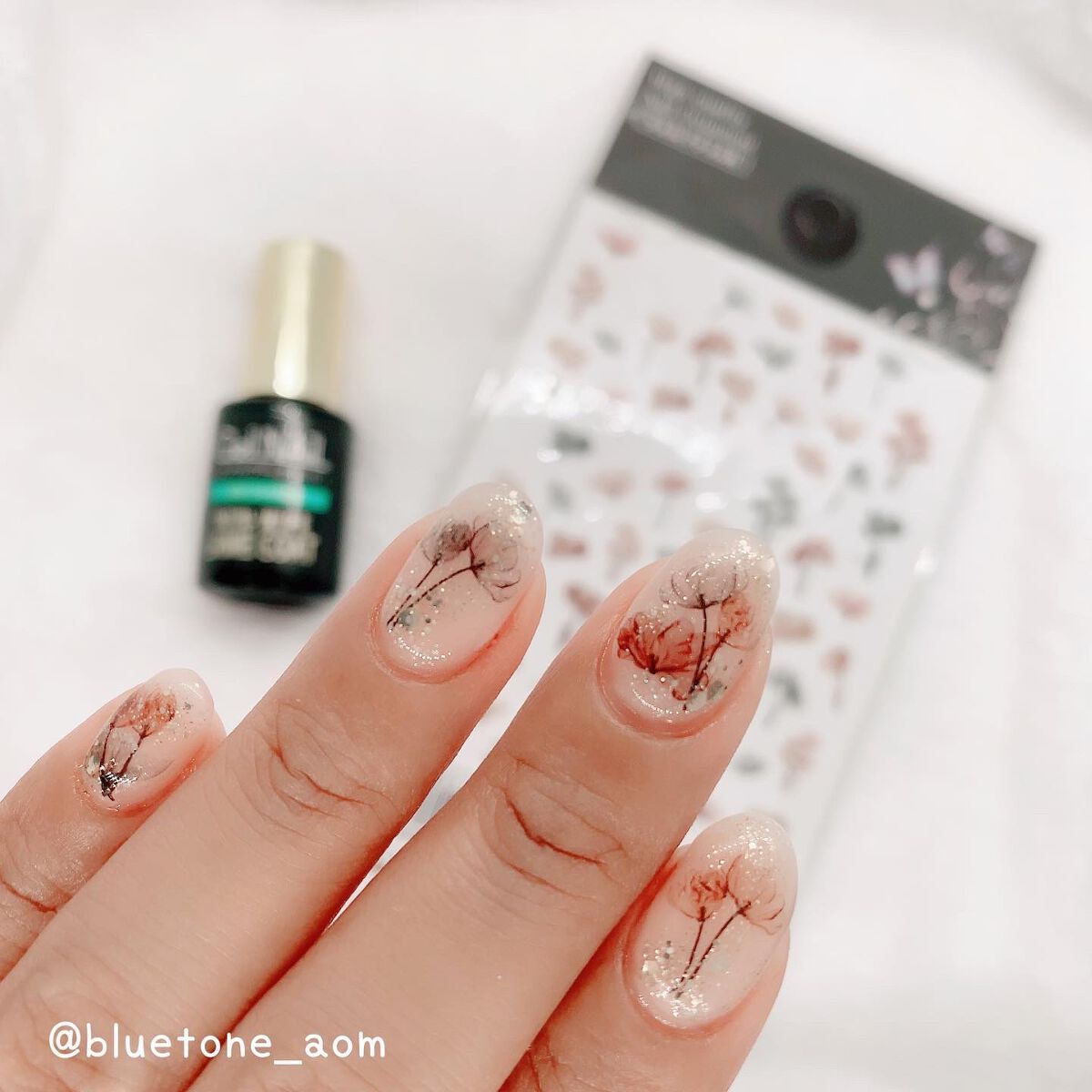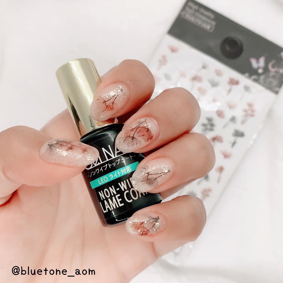 ラメがしっかりしてるし クリアカラーが入ってるから オーロラパウダー無しでも 充分キラキラしました! 反射強めのフィルムなので 実物はもっと うるうるとキラキラが強いです! ビー玉みたい🥺 ネイルシール長持ちさせたいけど ちょっと飽きてきたな〜って時とかに 全然違った印象になるのでオススメです! Seriaのベースジェル 本当にうるうるネイルしやすいので オススメしたい🙆♀️