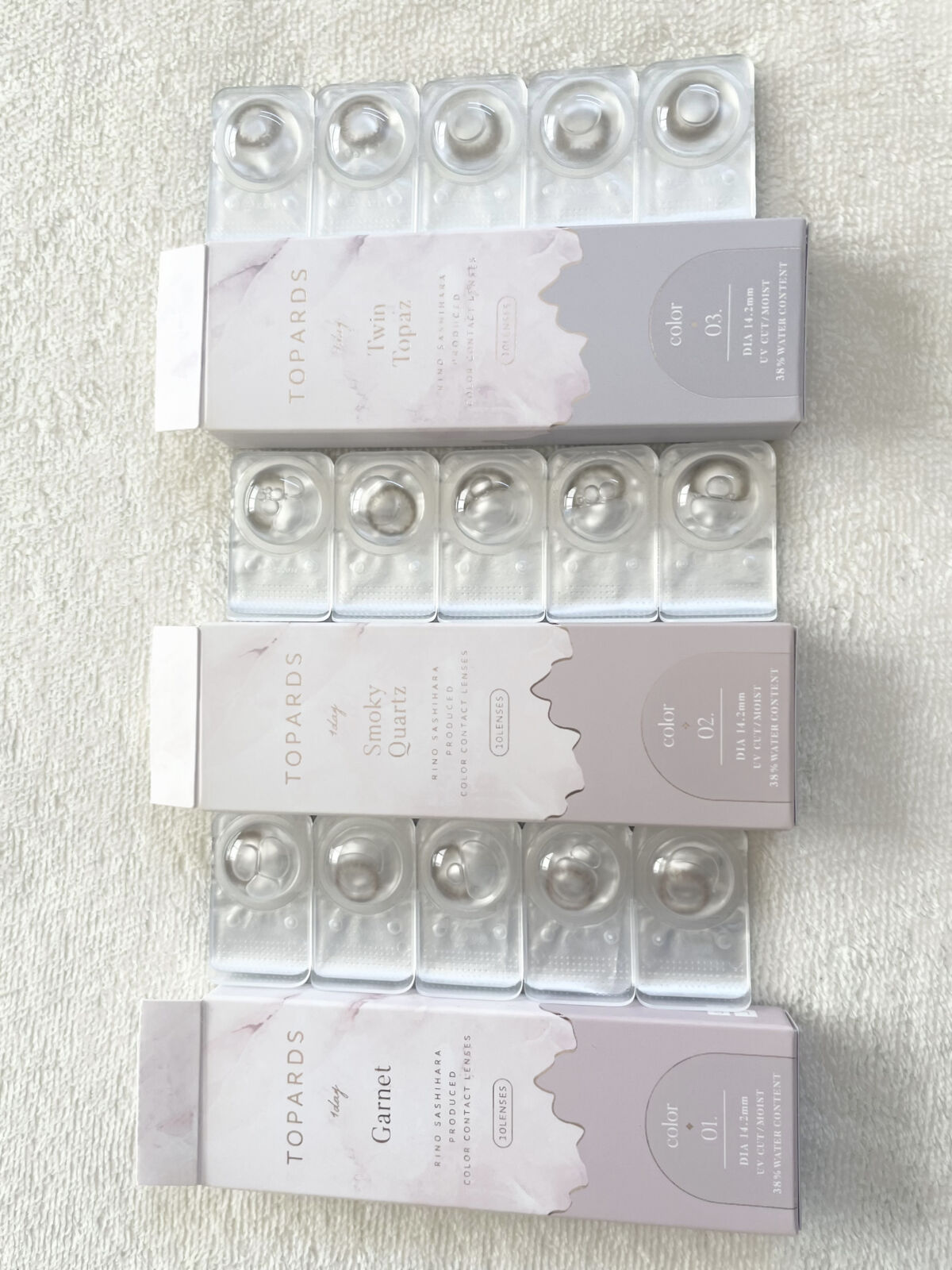 ▼トパーズ推しカラコン2選🪄💫【TOPARDS/1day】TOPARDS(トパーズ)全18色/各1,760円(税込)【カラー】#ガーネット#スモーキークォーツ《レンズスペック》使用期間:1dayレンズ直径(DIA):14.2mm着色直...