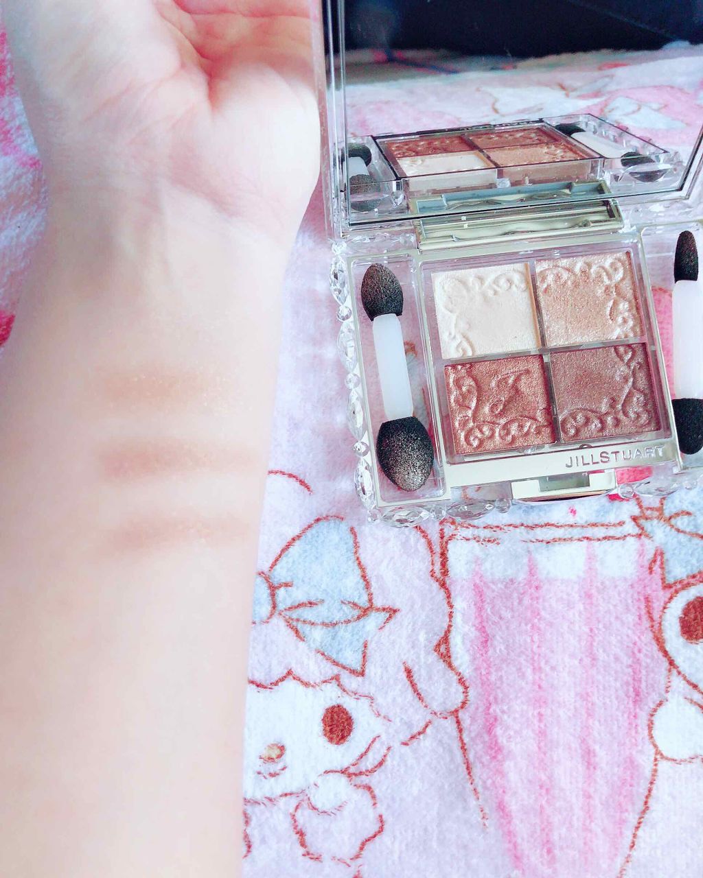 キラキラが可愛い #アイシャドウ 👀 【 #JILLSTUART / #ブルームクチュール アイズジュエルドブーケ 】 1番左のアイカラーは少しぷにっとしていて密着感があり、透明感を与えるそう。 全体的に発色は柔らかいので濃さを調節しやすくてメイク初心者の方にもおすすめです。