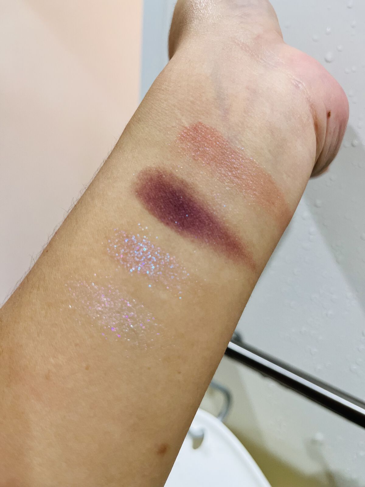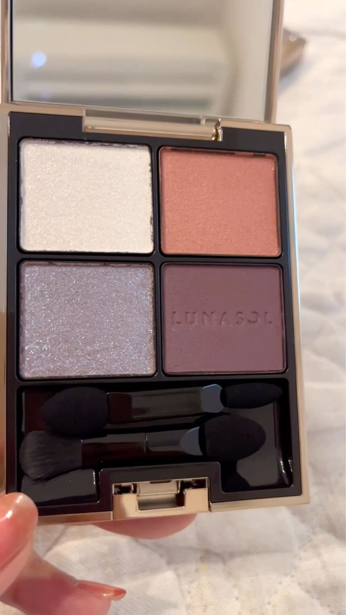 ブルベの冬メイクにぴったりなパープルパレット! ルナソルらしいシアーで透明感のある発色だから比較的ダークめのパープルでも扱いやすかった◎ まず左上!定番のNにはなかった、ギラッギララメ!! これぞルナソルだー!って感じしません🥹? 意外と使えるのは瞼の色味を整えてくれるベージュ! これ結構使い道どうなの?って思うかもだけど発色はしなくていいんだよね。