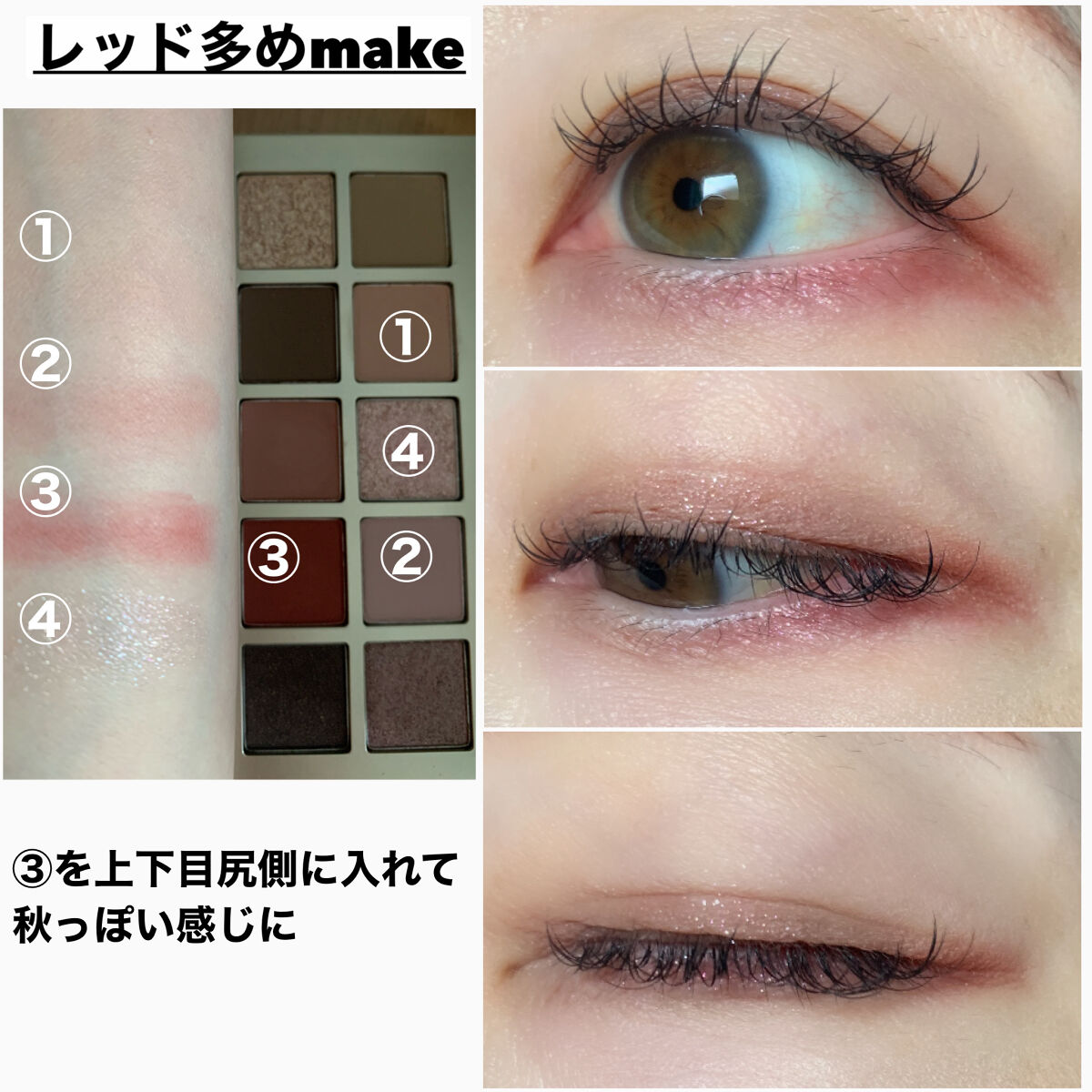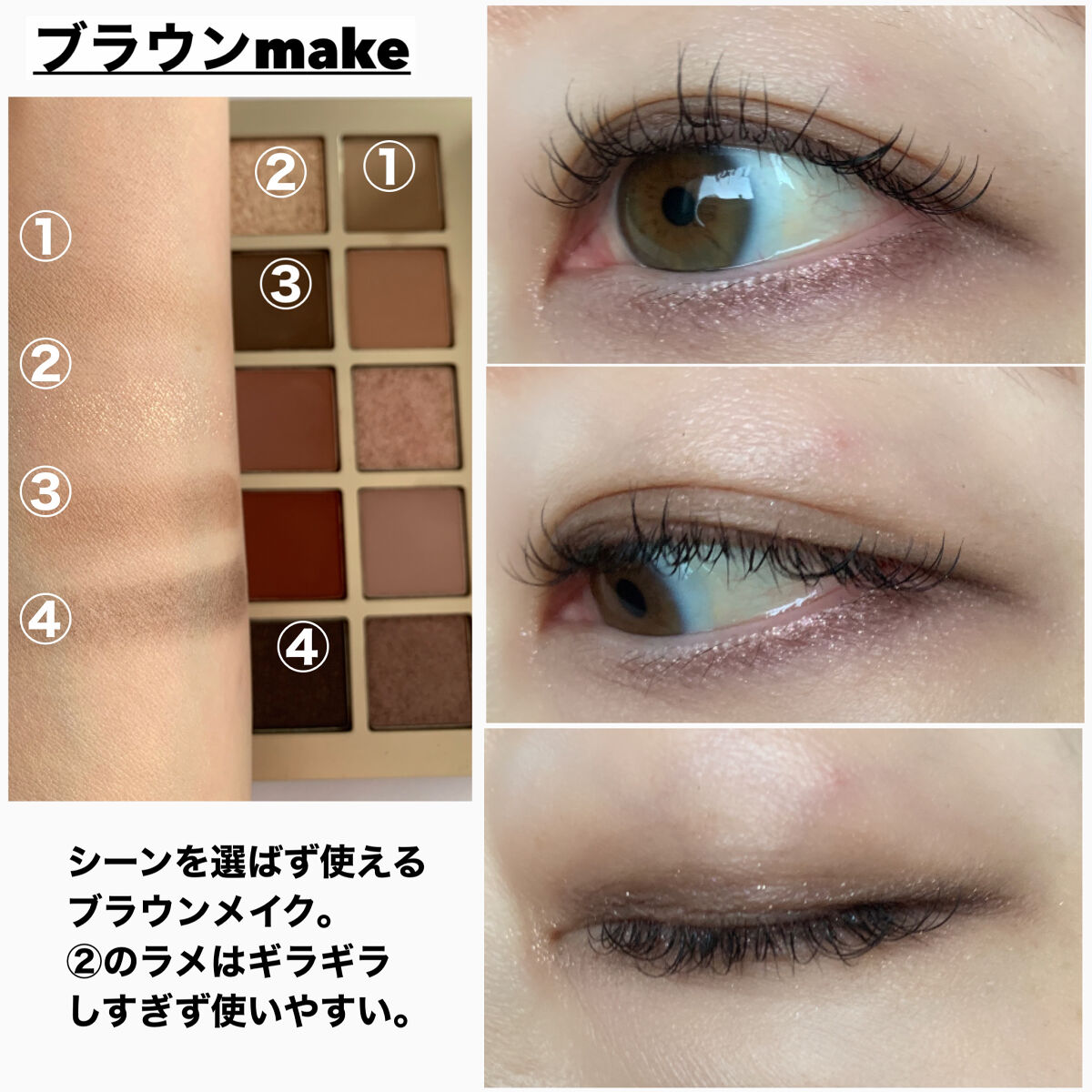 自然な陰影が生まれるブラウンと甘さ控えめピンクのハーモニーがすごくおしゃれな雰囲気💓 ラメをまぶた上下で変えると近寄ってみた時に新鮮な印象💞 何気なく買って大好きになったパレット🎨