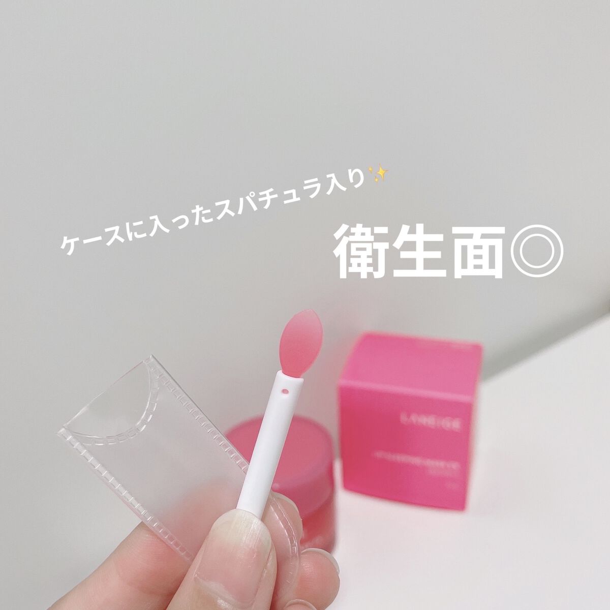 - 寝ている間にケアしてふっくらぷるぷるにうるおった唇へ。 2015年の初代発売以降、世界で2秒に1個売れている*¹LANEIGE大ヒットシリーズ *¹ 2024年グローバル販売実績 1.角質にアプローチするBerryFruitComplex (ベリーフルーツコンプレックス)*²が、 寝ている間に気になる乾燥や角質にうるおいを与え、つやのあるふっくらとうるおった唇に仕上げます。 *²ザクロ果実エキス、ブドウ果実エキス、ラズベリー果実エキス 2.ココナッツオイル(ヤシ油)を配合で、うるおいをあたえ睡眠中の乾燥を防ぎます。 3.今夜はどんな気分?5つのフレーバーから選べるワクワク感。 ■テクスチャー:やさしく馴染むなめらかなバームタイプ ■アレルギーテスト済み*³ *³全ての方にアレルギーが起こらないということではありません。 ■使用方法 寝る前に唇にたっぷり塗り、そのままお休みください。 翌朝、軽くティッシュオフします。付属のスパチュラで塗ることで、より唇の角質に馴染みやすくなります。 日中のリップトリートメントにも使用できます。