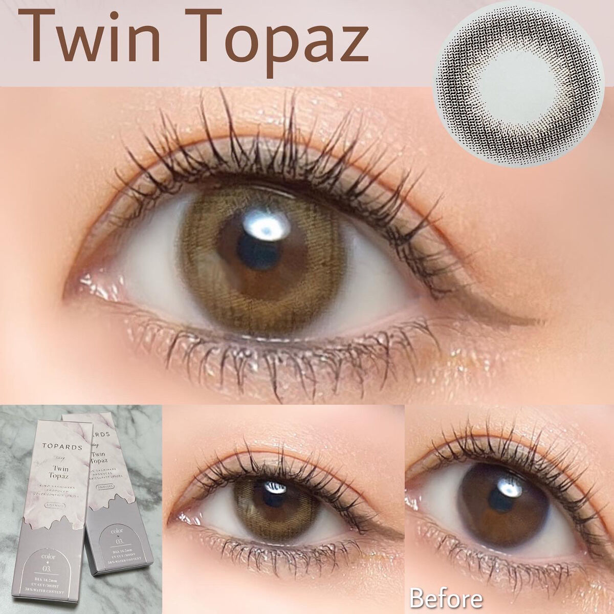 ✔︎︎︎︎TOPARDSゼリークォーツDIA:14.2mm着色直径:13.6mmBC:8.6mm使用期限:1dayトパーズの新色は"大人の引き算盛れ"レンズ❕細フチの外側にさりげないフチがある1.5重フチがちゅるん感と抜け感を演出💗カラーは瞳...