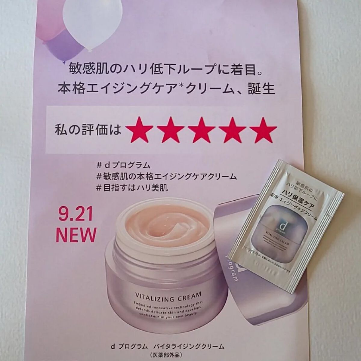 - 【医薬部外品】 敏感肌特有のハリ低下の要因にアプローチ。 肌にうるおいを届け、明るく、ふっくらとしたハリ肌へ導く薬用 エイジングケア*クリームです。 なめらかにやさしく広がるクリームが、しっかりうるおいを密封。 乾燥による小ジワを目立たなくします。(効能評価試験済み) 美肌菌に着目したd プログラム。酵母エキス、グリセリン配合。 スパチュラ付き。 *年齢に応じたうるおいケア ●厳選成分配合、クリーン製法 ●パラベン(防腐剤)フリー、アルコール(エチルアルコール)フリー、鉱物油(ワセリンを除く)フリー ●無香料、無着色 ●低刺激設計。敏感肌の方のご協力によるパッチテスト済み** ●スティンギングテスト済み** **すべての方にアレルギーや皮ふ刺激がおきないわけではありません ●お手入れの最後に、スパチュラにパール粒1コ分を目安を目安にとり、顔全体にやさしくなじませます。 ●乾燥やハリの低下が気になる部分には、少量を重ねづけし、最後に、やさしく手のひらで包み込みます。 ●とくにデリケートな部分にお使いになるときは、肌を強くこすらないようにしてなじませます。 ●夜も朝も、ご使用いただけます。