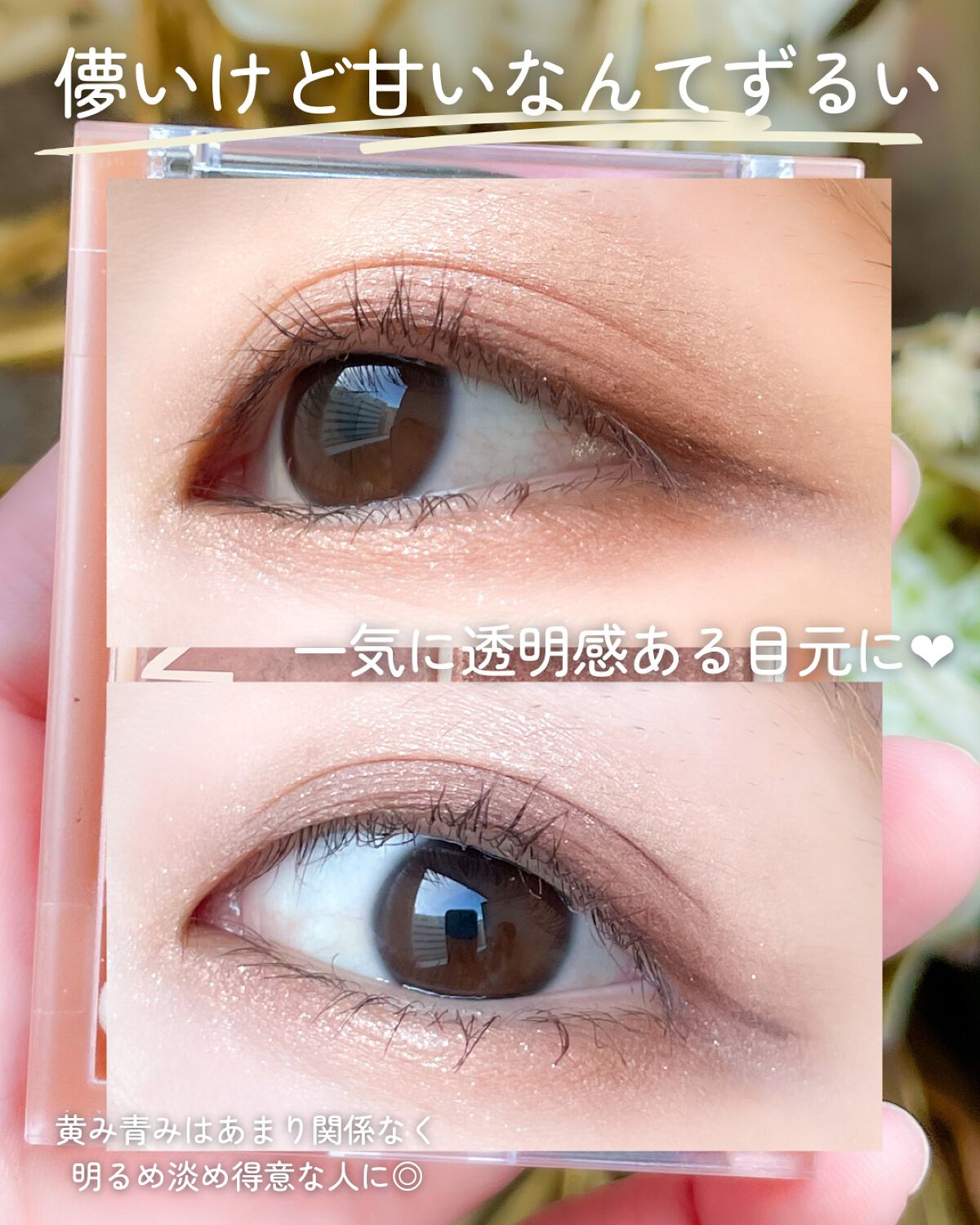 中でもわたしのお気に入りは別の投稿でもご紹介してる、キャンメイクのシルキースフレアイズストロベリーコッパー🍓春夏タイプどちらもいけるものなのでオススメです💪🏻✨ あとはエクセルのsr10の優しい粉質がサマーさんにぴったり!ベーシックメイクにもおすすめカラーです🤍 また青みを使ってみたい場合はエクセルのcs04やリンメルも良いです!リンメルの019は大人気カラーでもあります!