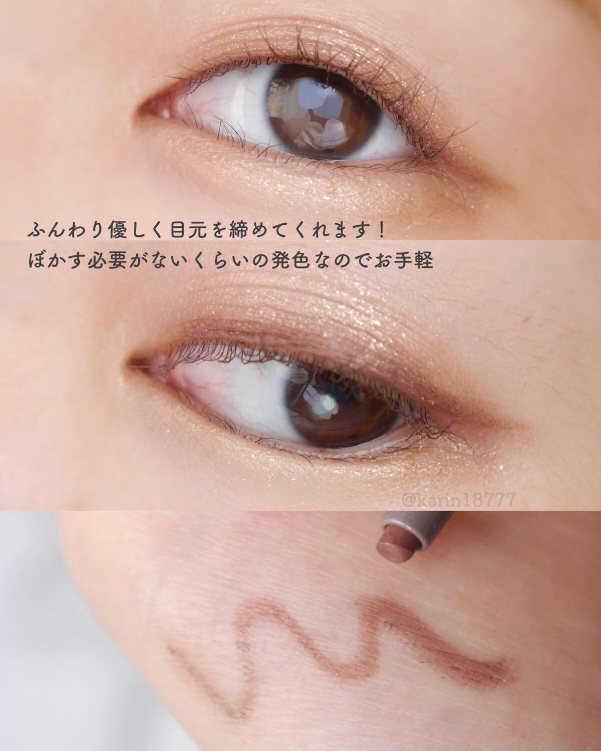 - 濃すぎない柔らか発色で目もとを際立たせるふわ締めライナー ●ブライトパールが光を拡散し、輪郭が自然と肌になじみつつ、シアーな発色は強すぎない締め効果でナチュラルに目力アップをします ●するするなめらかに描けるスムースタッチ芯 ●高密着で長時間きれいなラインをキープ 涙・汗・水・こすれに強い耐久処方。 ●パンテノール・シルク・ヒアルロン酸・カモミラエキス配合(すべてうるおい成分)