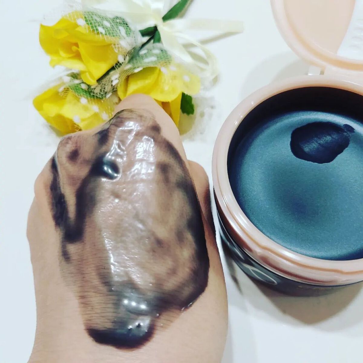ダルバシリーズはいくつか使っていますが、こちらは香りが好きなんです。このクリームも香りが自分好みです。🙆 そして、チューブからだすと、2色のクリームが出てきて、びっくり。そちらをしっかり混ぜてから顔に馴染ませます。テクスチャーはやわらかめです!🎉 顔に馴染ませたあとはしっとりして、私には合っています。