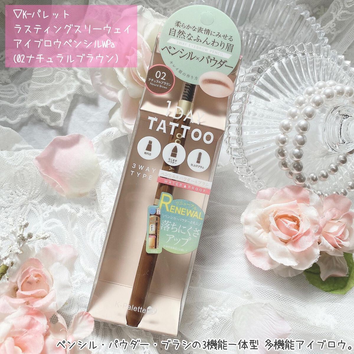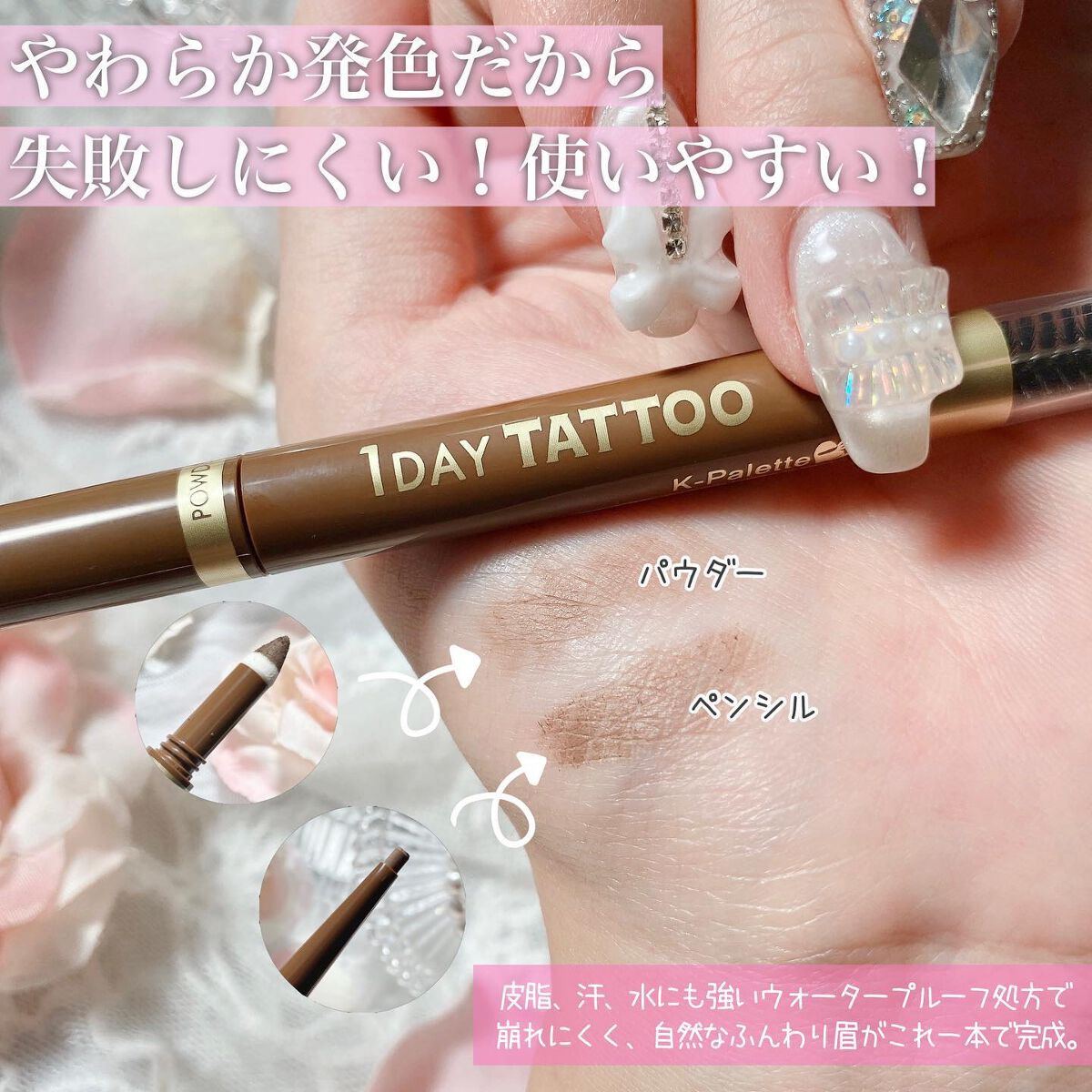 落ちにくいのはモチロン、描きやすいし、汗にも前髪こすれにも、強くてうれしい K-パレット 1DAY TATTOO さんのアイブロウ。 一本でカンタンに、抜け感あって立体的な美眉になれる! 自眉の毛流れを活かした仕上がりやキレイ目メイクを目指したい方にも○ 優し気メイクや、キメすぎない眉を目指す方に○ ペンシル・パウダー・ブラシの3点が一つにまとまっていてめちゃコンパクトに使いやすいのが魅力◎