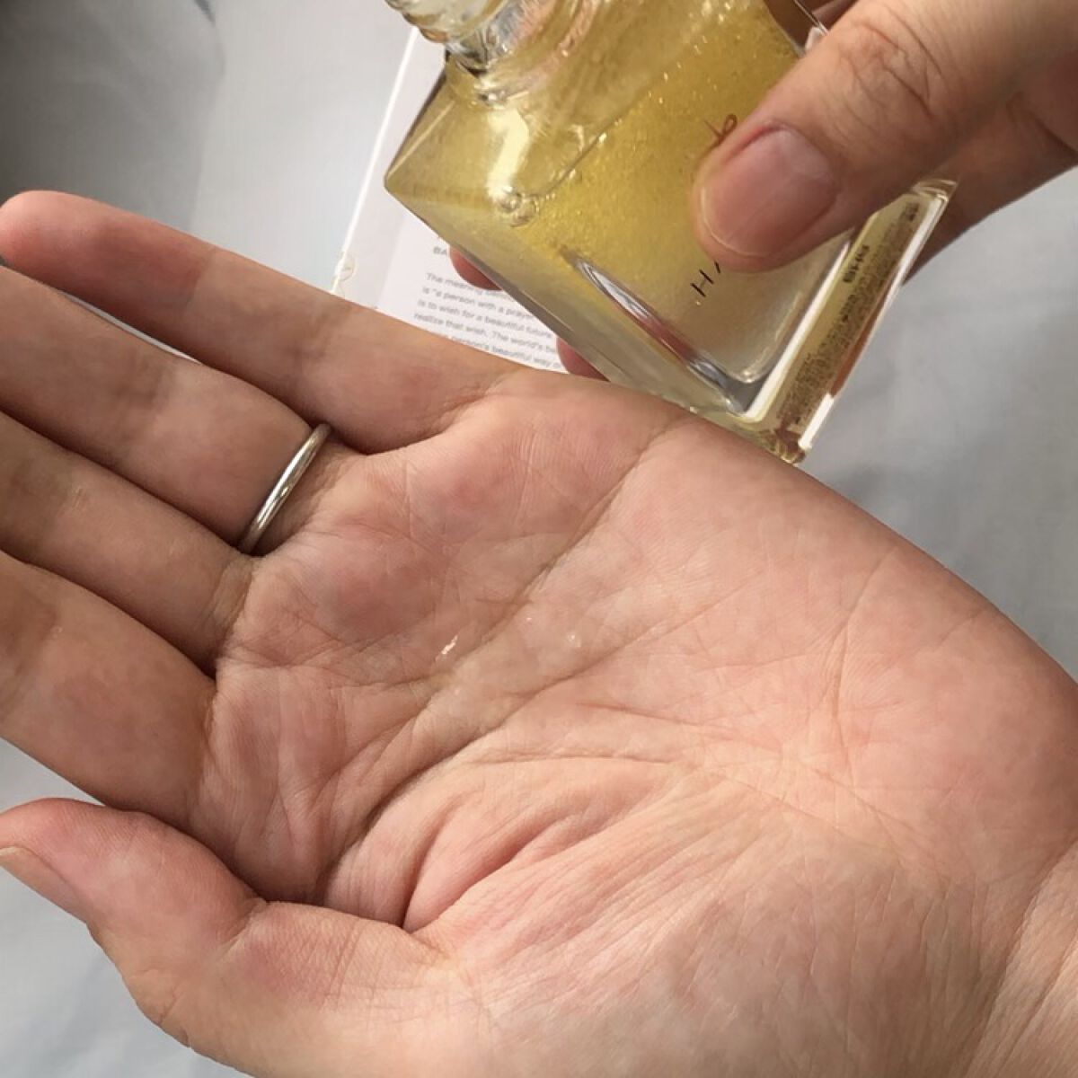混ざるとキラキラにみえて素敵っ💕 手にだすとイランイランやベルガモットの天然アロマの良い香り💐 ベトベトせずに肌なじみが良いのでオイル入りだけど朝にも使いやすい🙆♀️◎