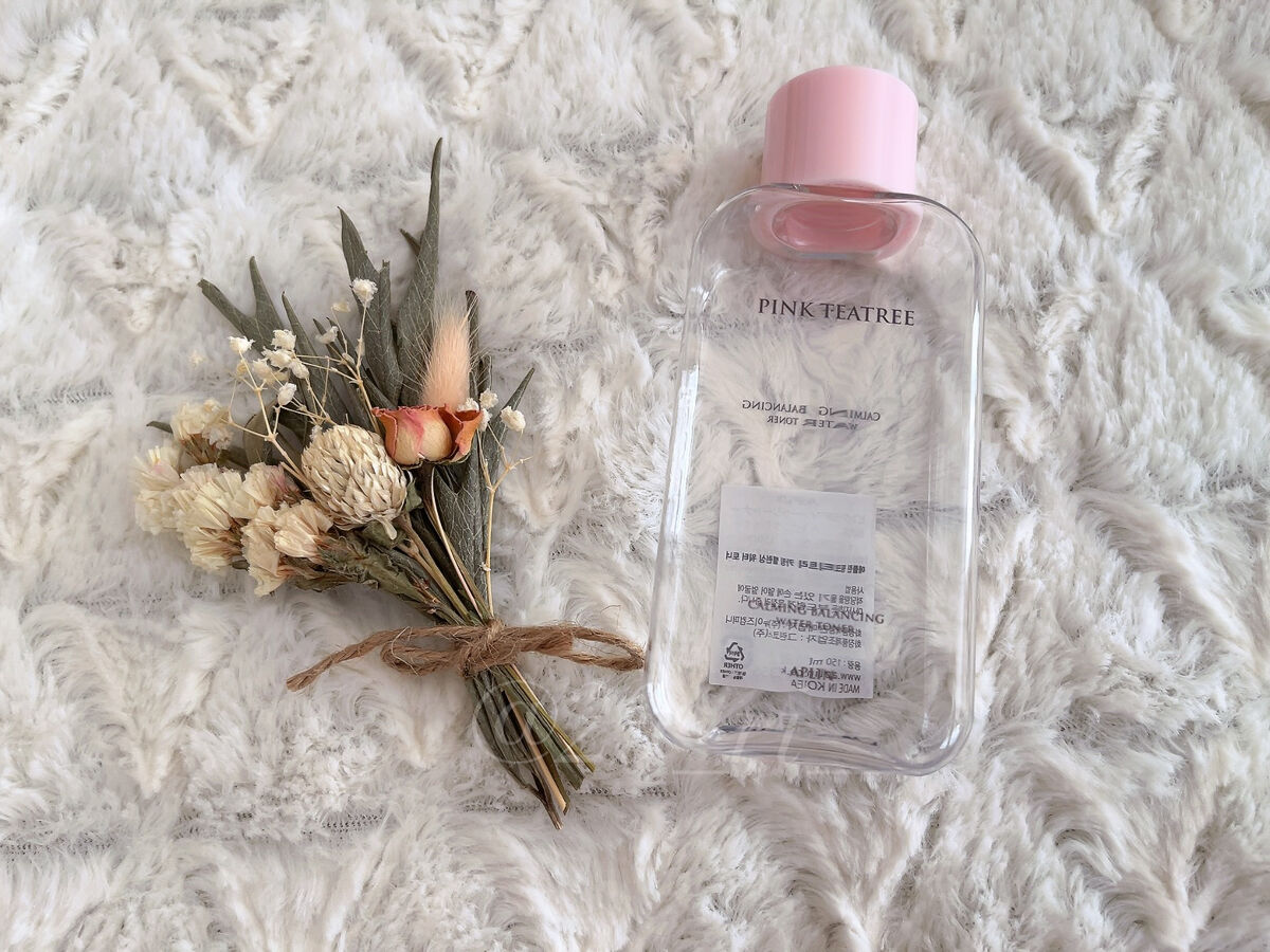ティーツリーや、シカエキスを配合でニキビ、肌荒れ悩みをケアしてくれるトナー🩷 ピンク色は自然成分「ビタミンB12」本来の色だそう✨ サラサラテクスチャーで、さっぱりした使い心地✨