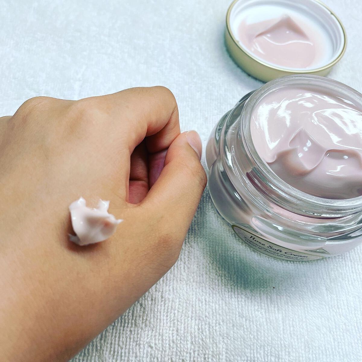 柔らかくなめらかな肌に整えてくれるクリーム♡テクスチャーはこっくりとしたクリーム状で伸び広げやすいです。肌馴染みよく、ベタつかないのにしっとり♡馴染むとスベスベとした手触りになるのが1番のお気に入りポイント。メイク前にも使いやすいです👍ローズ...