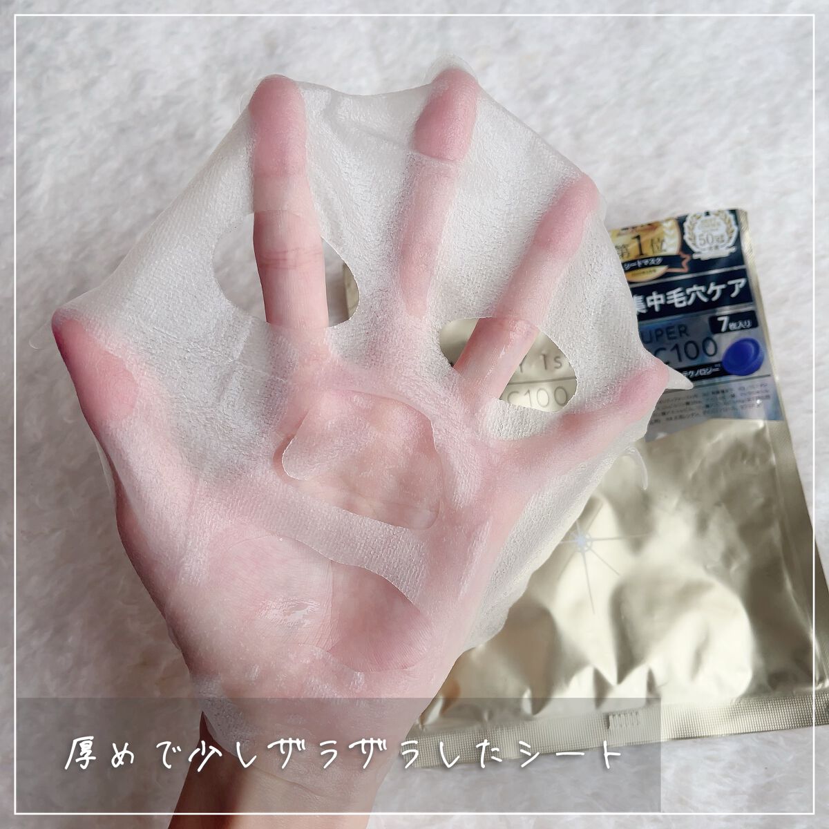 | シートは厚みがあるんですが、柔らかいので顔にピタッとつくのがいいんですよね〜! | 詳細を見る | ||