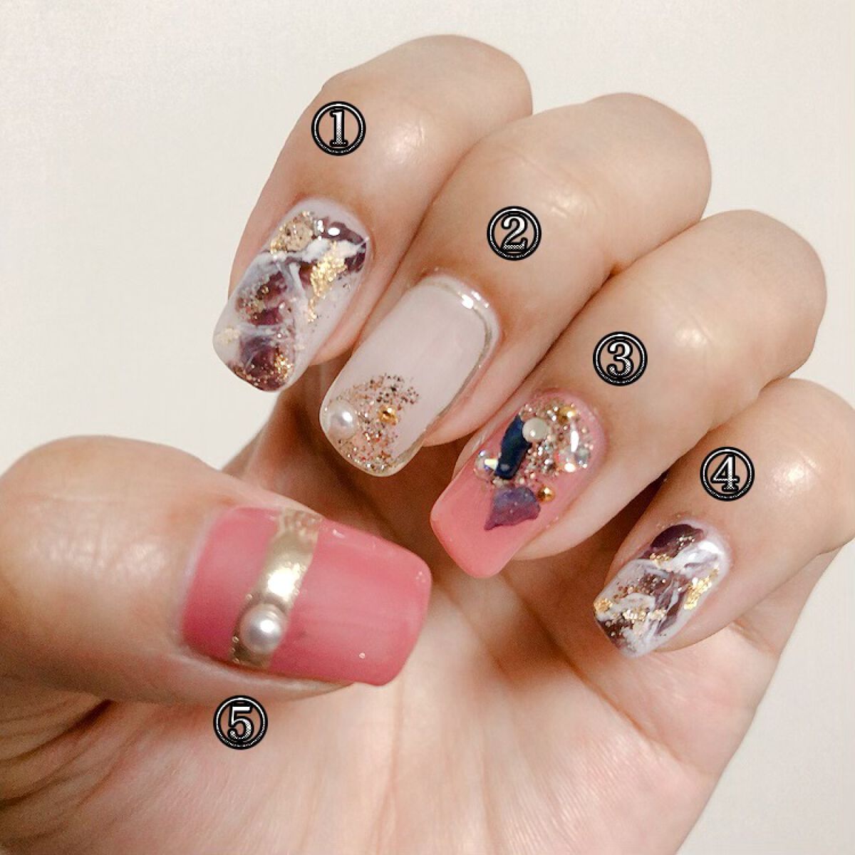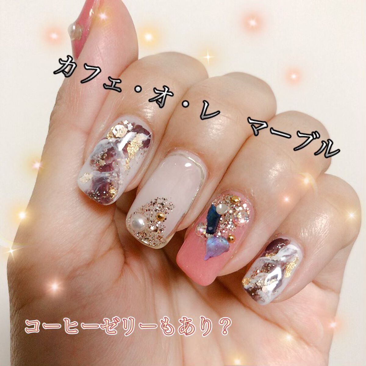 ꫛꫀꪝ✧‧˚ネイル✨やりたいデザイン迷子だったので、簡単に出来るカフェオレ?カフェラテ?コーヒー?ネイルにしてみました٩( ᐛ )وベースやトップ、スタッズ以外は100均✨seriaのモカベージュ、ミルキーホワイト、ダークブラウンのみ!ミルク...