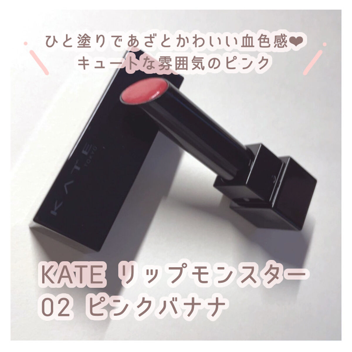 ひと塗りでツヤが溢れだす唇に❤︎ KATE リップモンスターツヤバース G01明後日の水たまり リップモンスター ツヤバースは柔らかく唇に密着するジェル膜でリキッドのようなみずみずしさとバームのようなちゅるんとした仕上がりを実現👏 鮮やかなピンクレッドカラーで顔色を明るく見せてくれます!