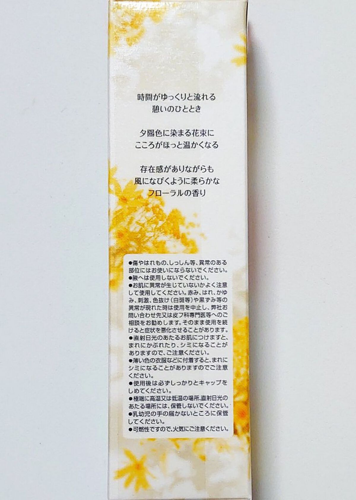 - キンモクセイを基調としたぬくもりあふれる花束の香りです。 さりげなく自然に香るからシーンを選ばず使えます。 トップはベルガモットやピーチの果実の香りが透明感あふれる印象に。 ミドルはキンモクセイを基調としたフローラルブーケが華やかに香ります。 ラストはシダーウッドとムスクが全体をやさしくまとめます。